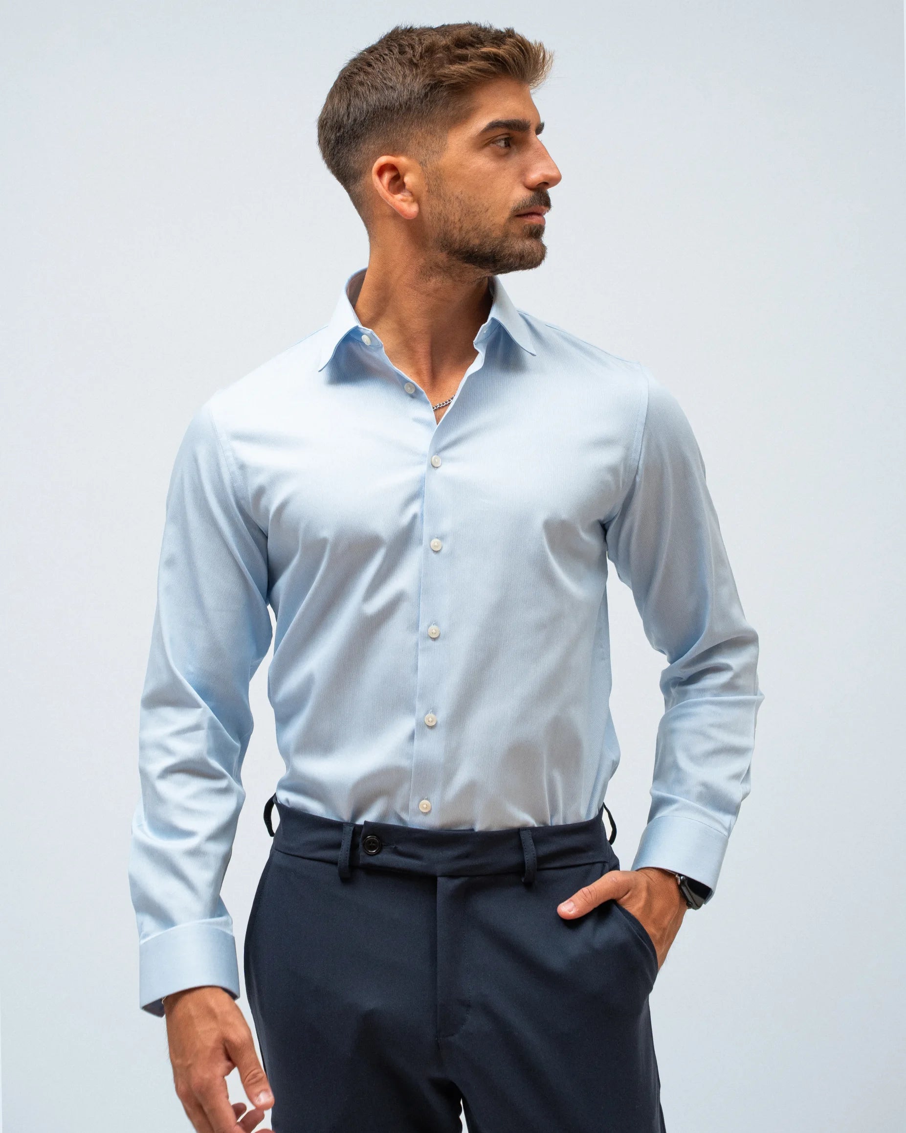Camisa Slim Fit suave, respirável em algodão orgânico flexível.