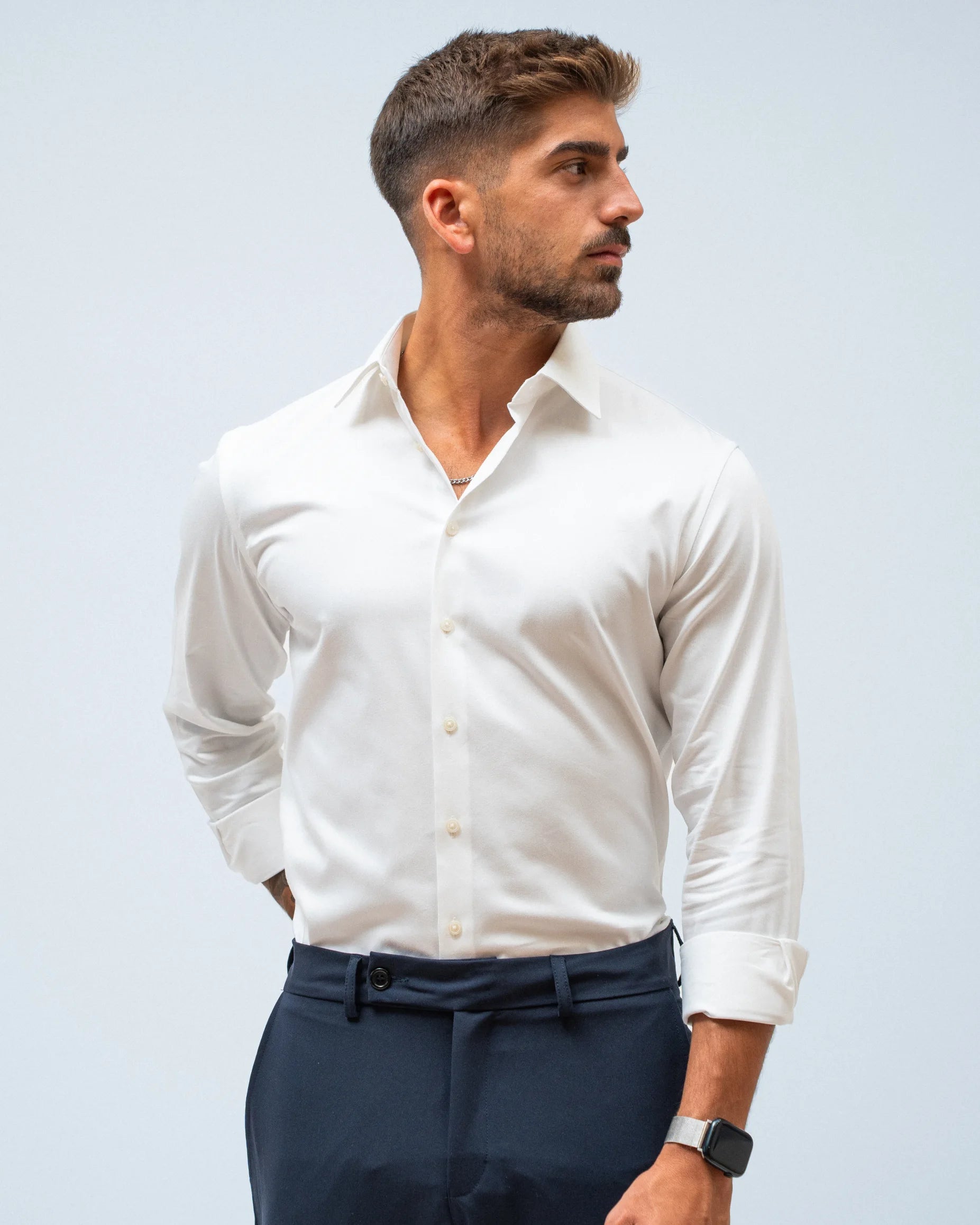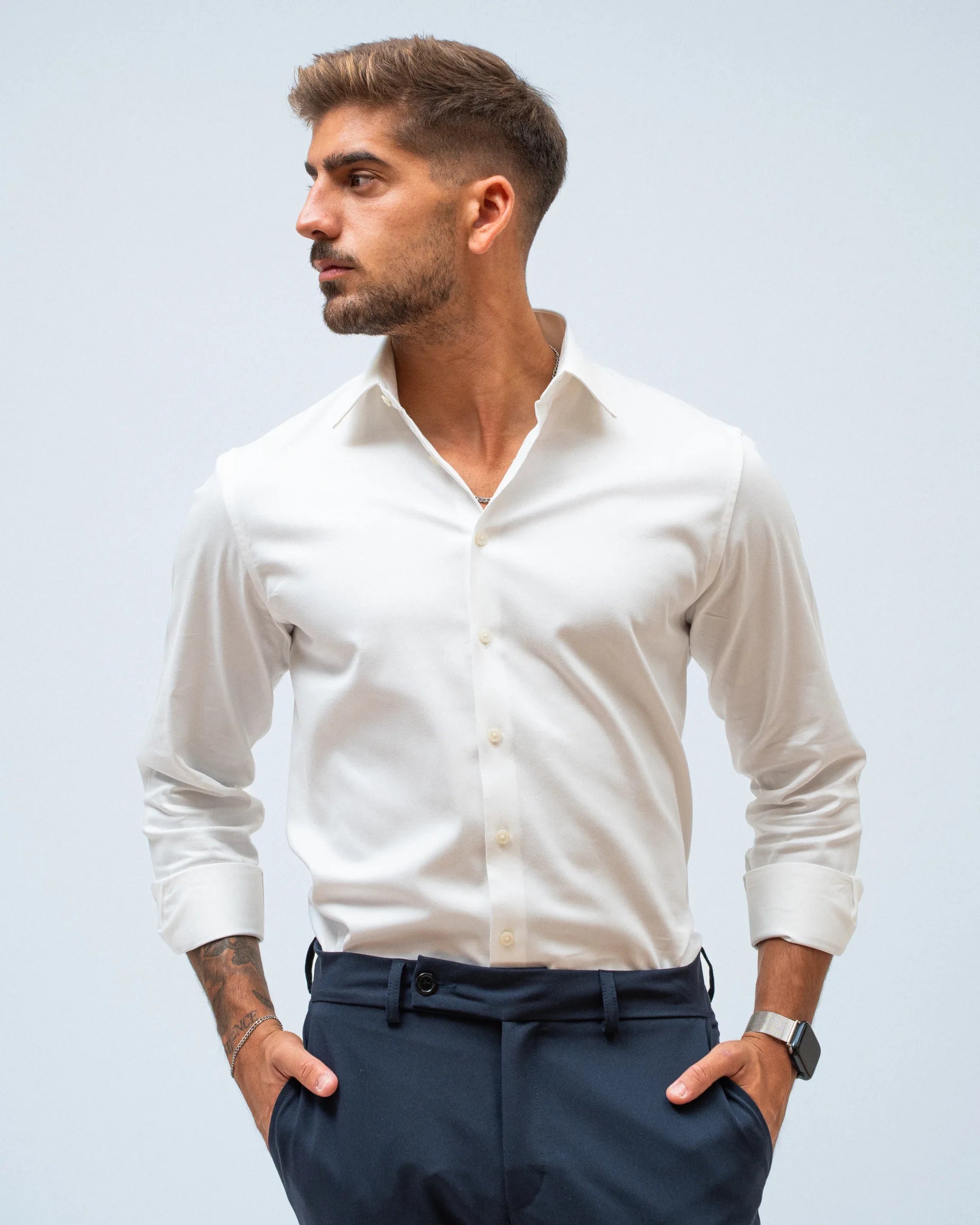 Camisa Slim Fit suave, respirável em algodão orgânico flexível.
