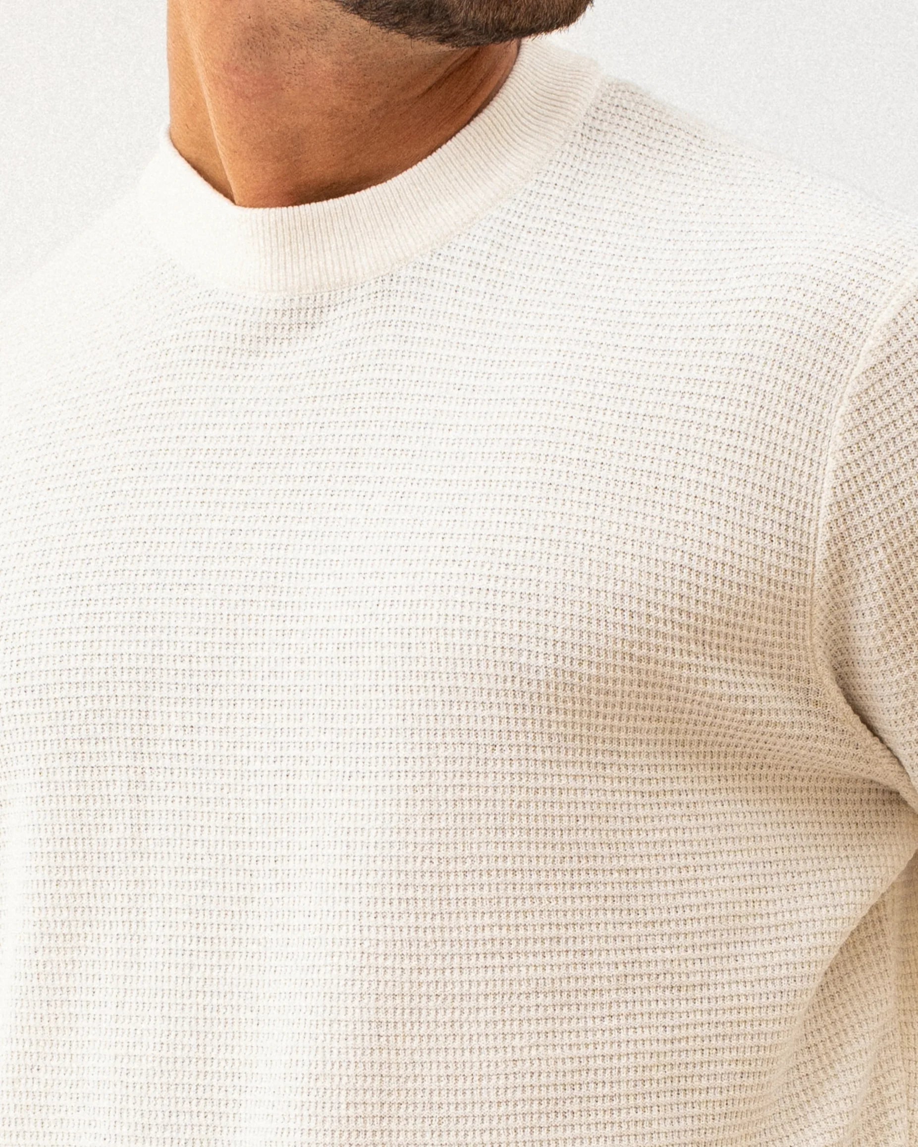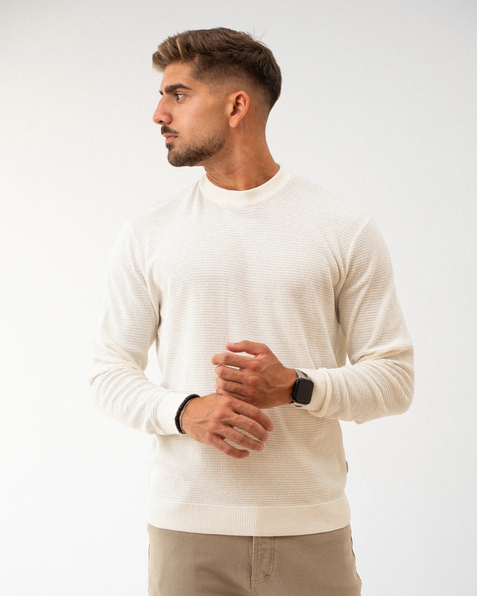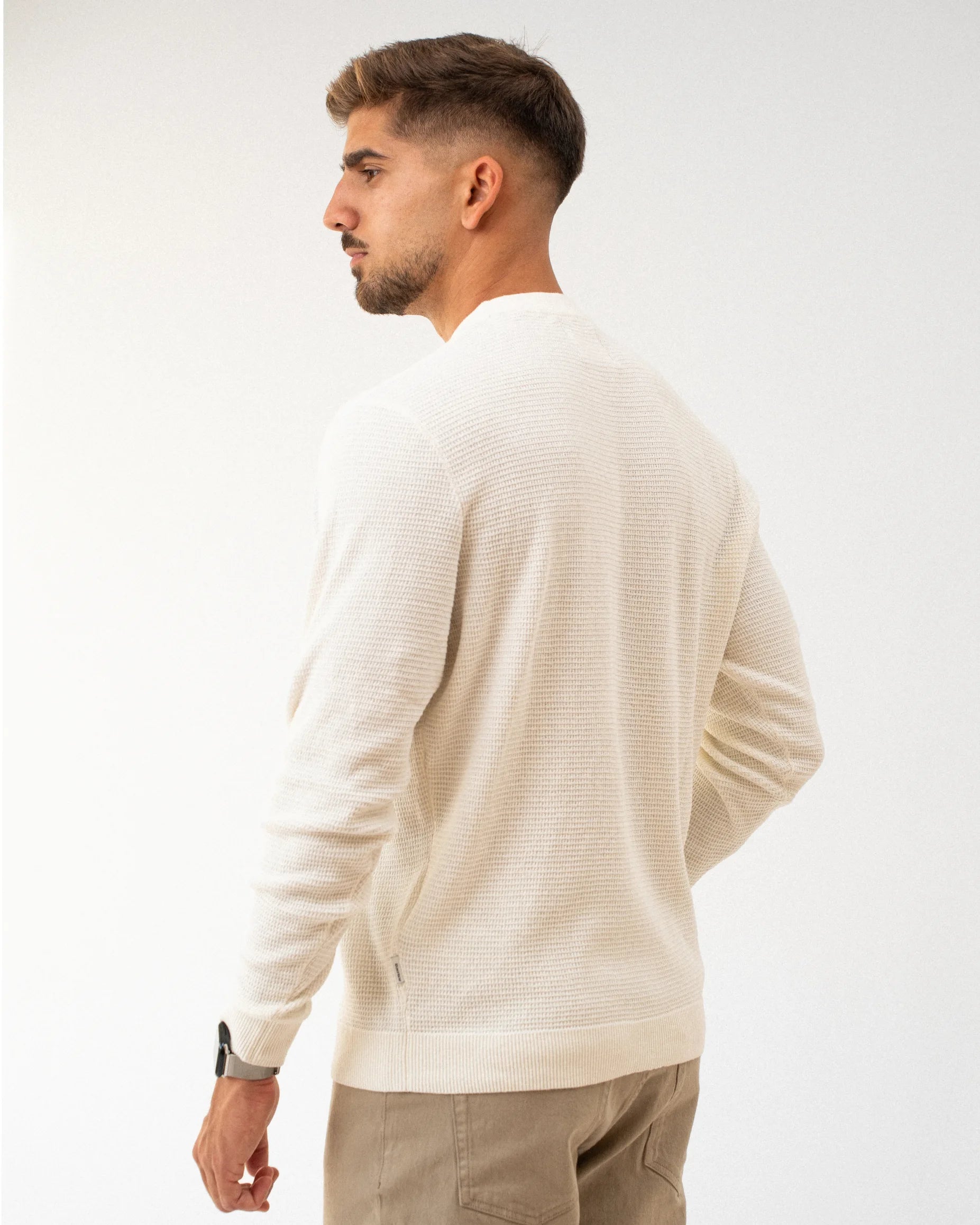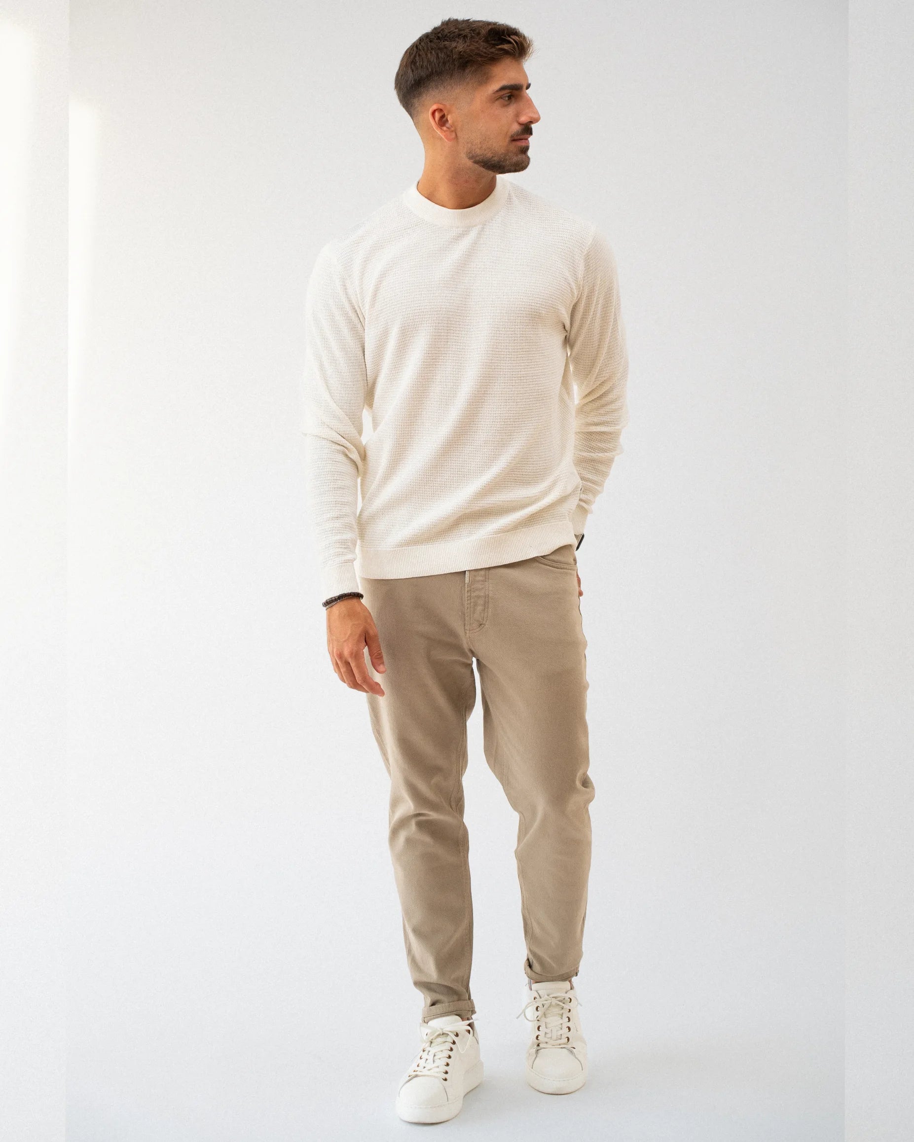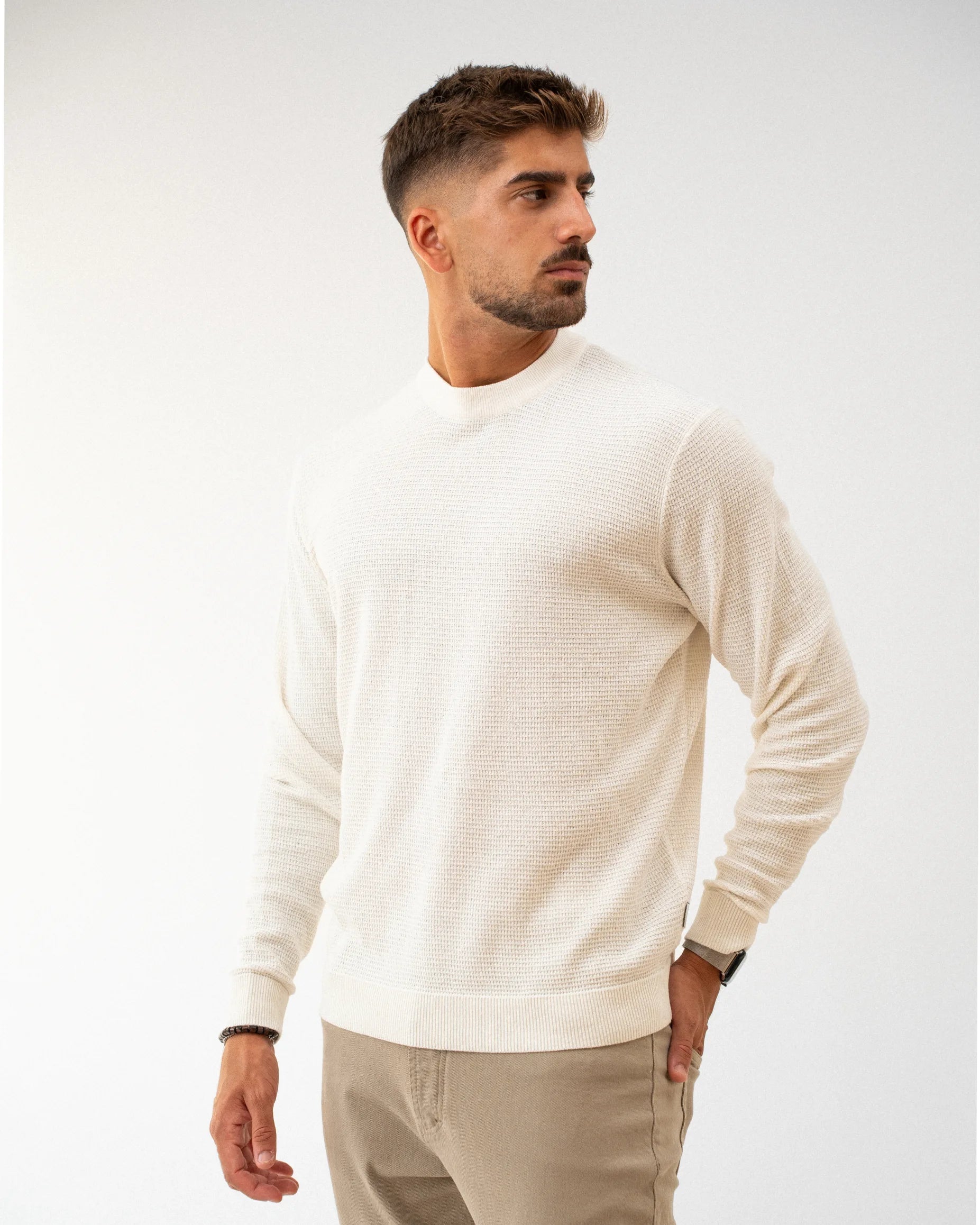 Camisola em malha de 70% algodão / 30% poliéster. Gola redonda e manga comprida