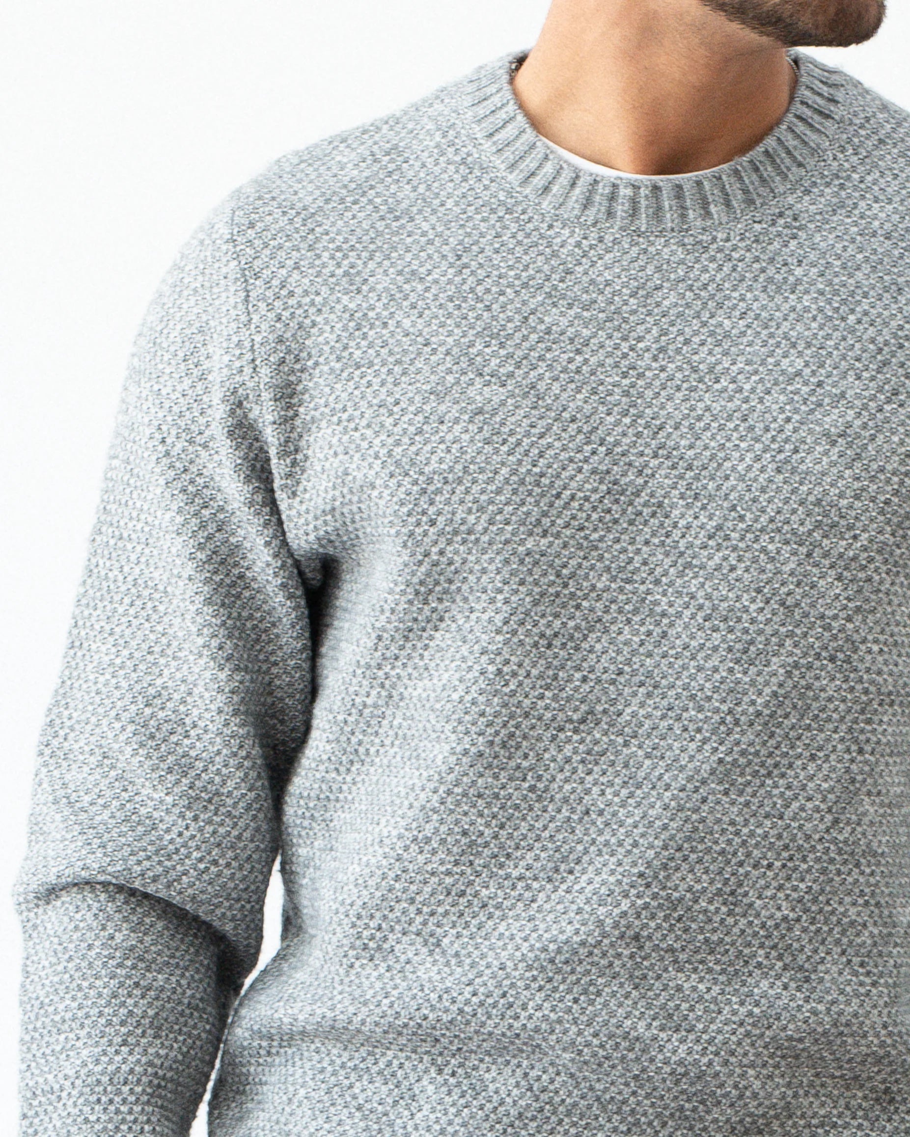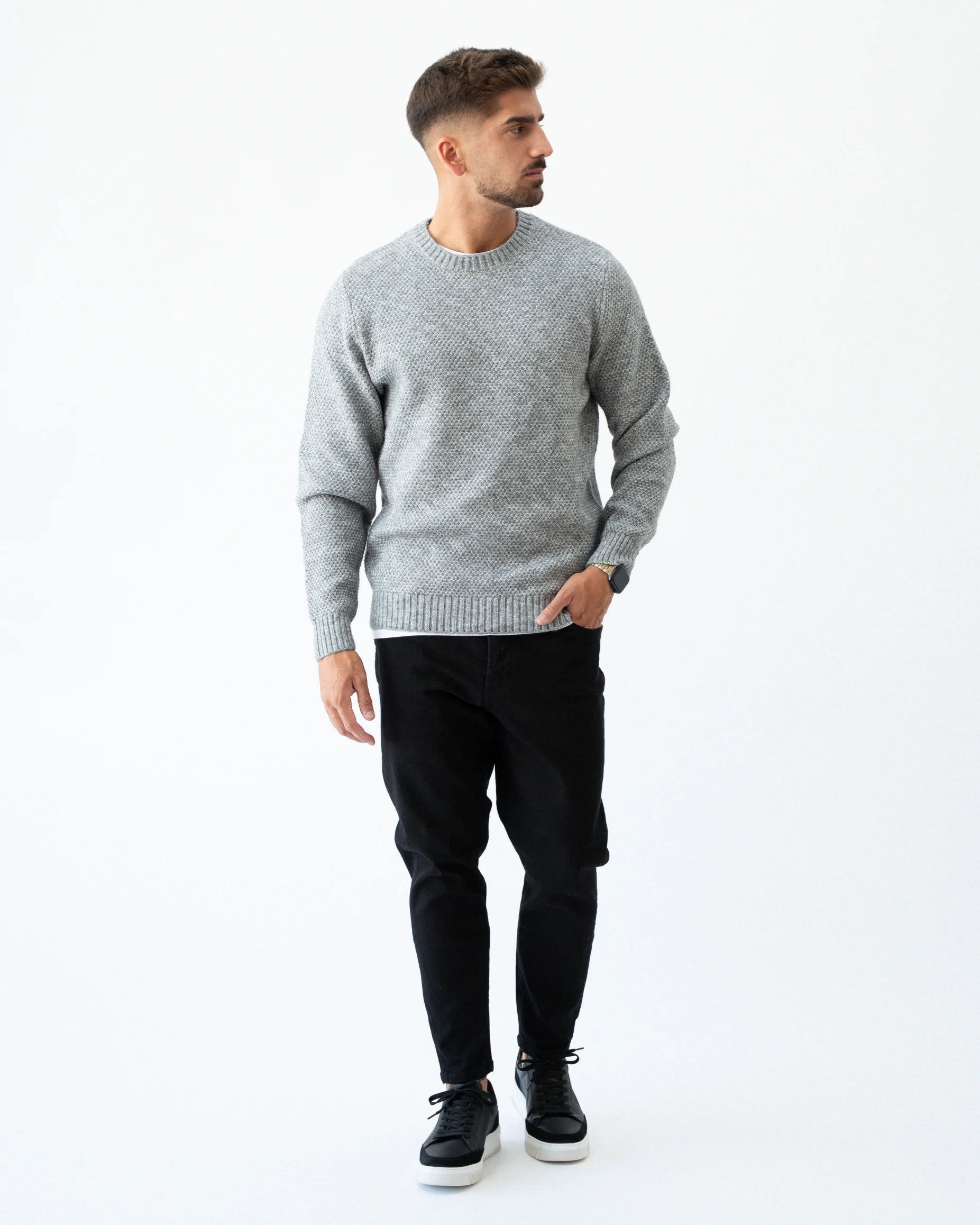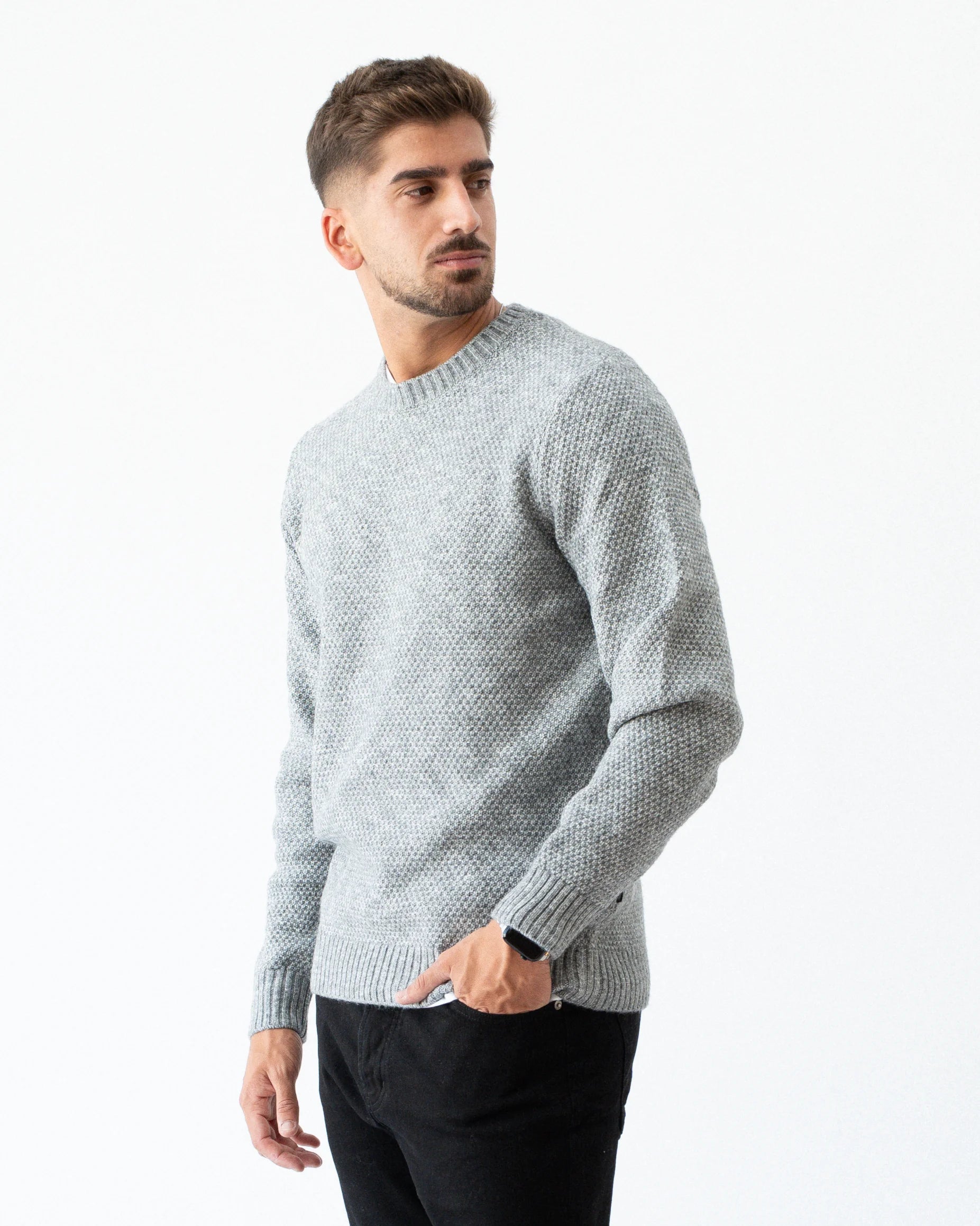 Camisola tricot matizada confortável e flexível. Gola redonda