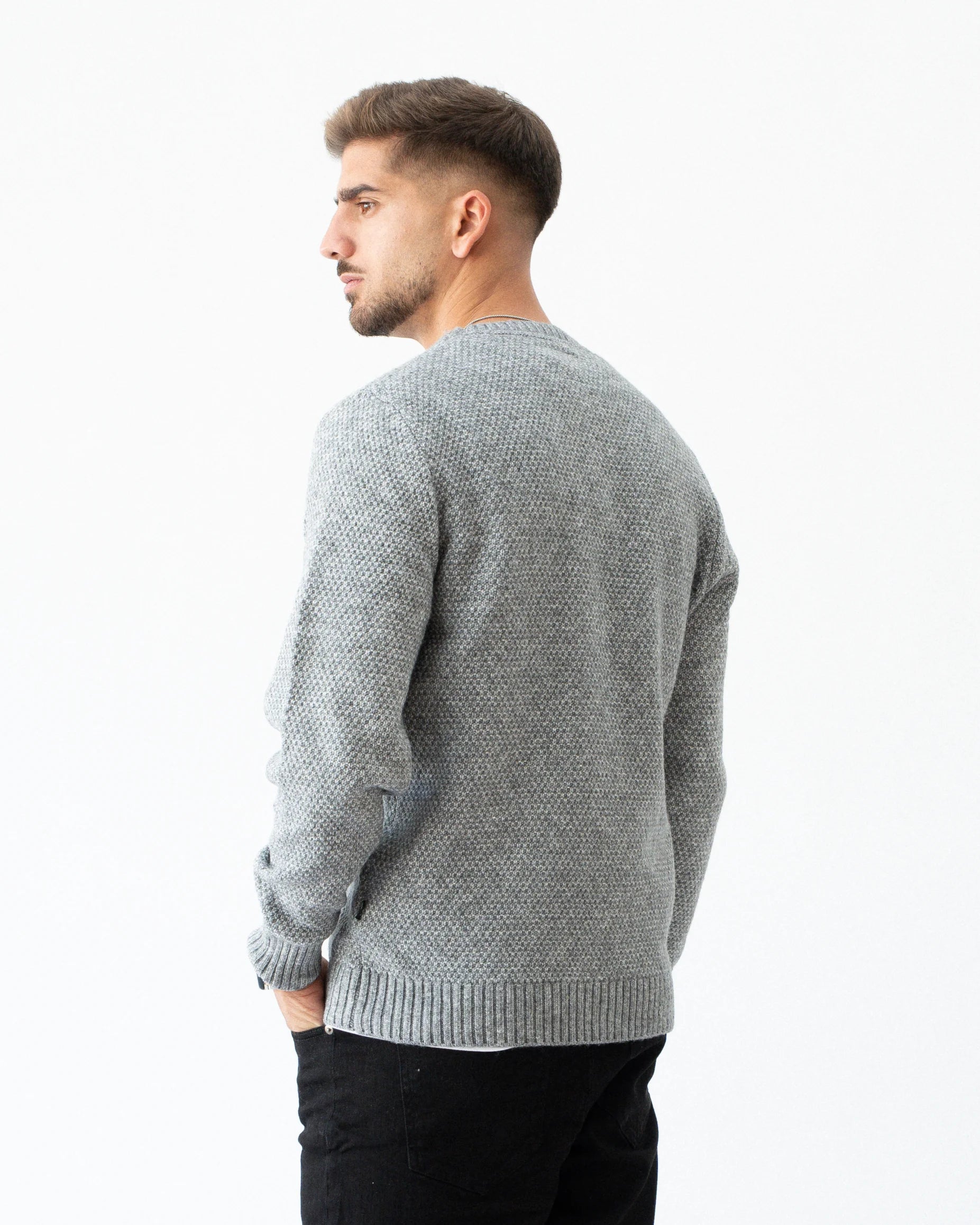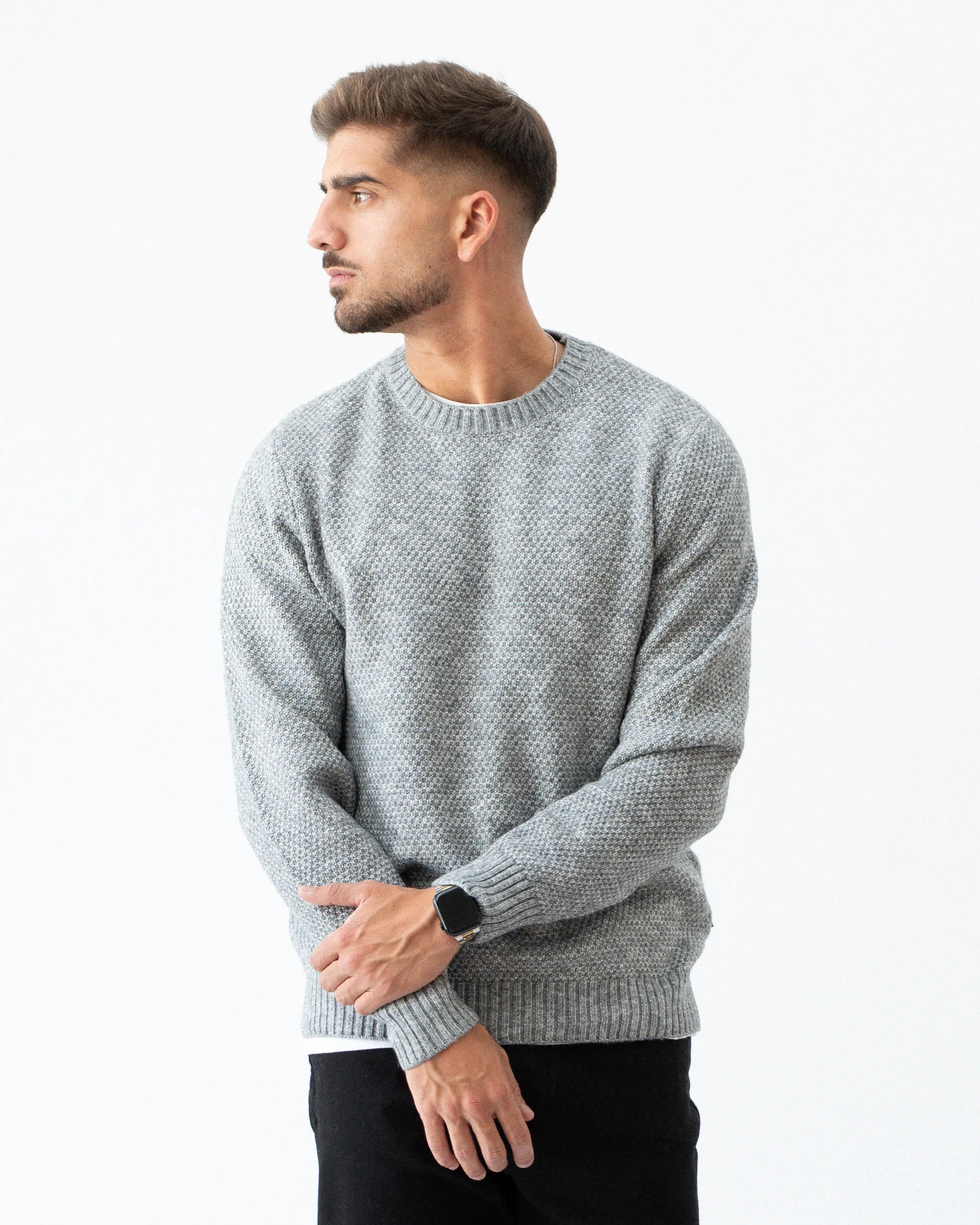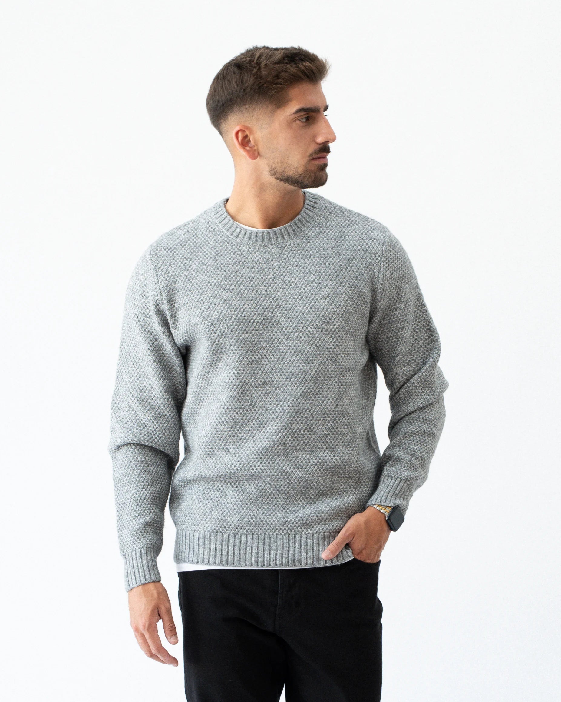 Camisola tricot matizada confortável e flexível. Gola redonda