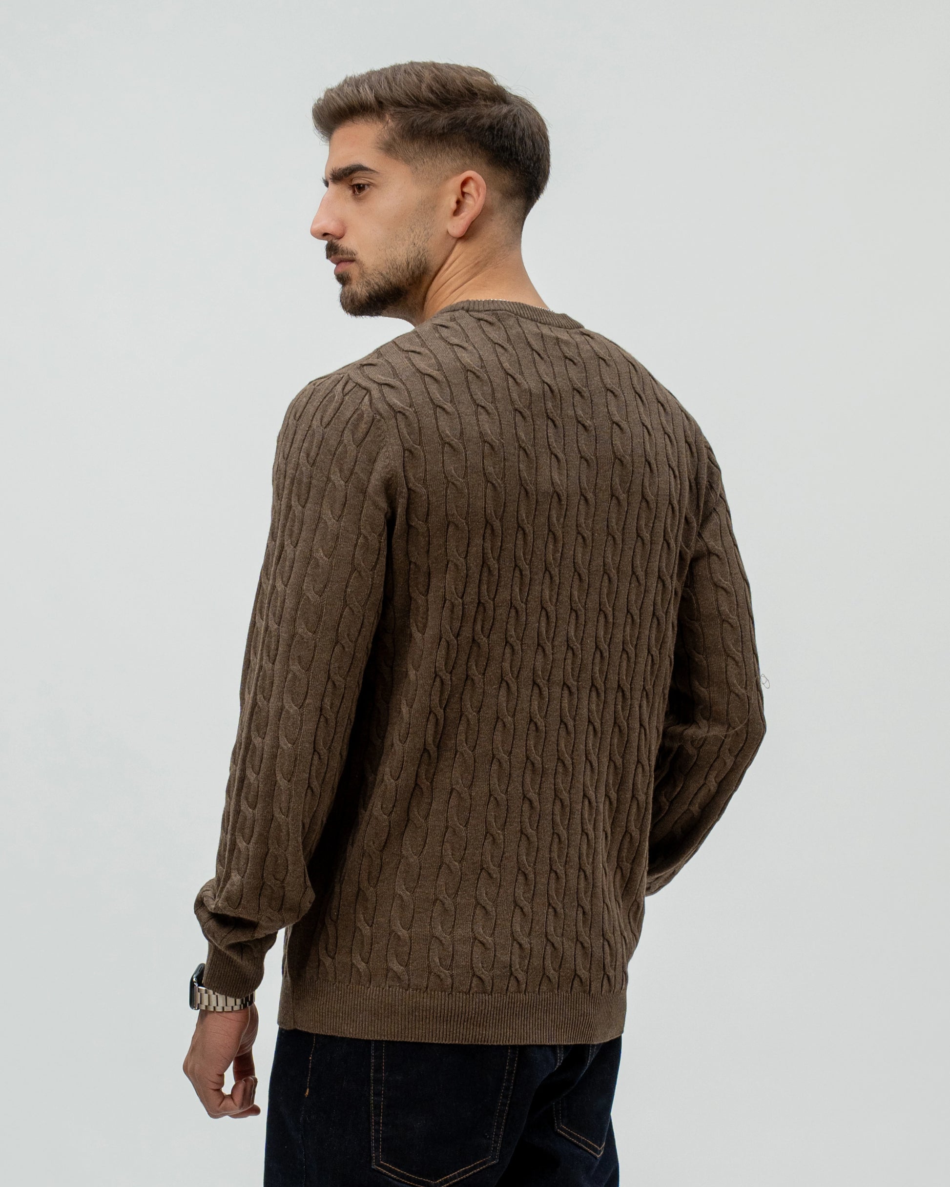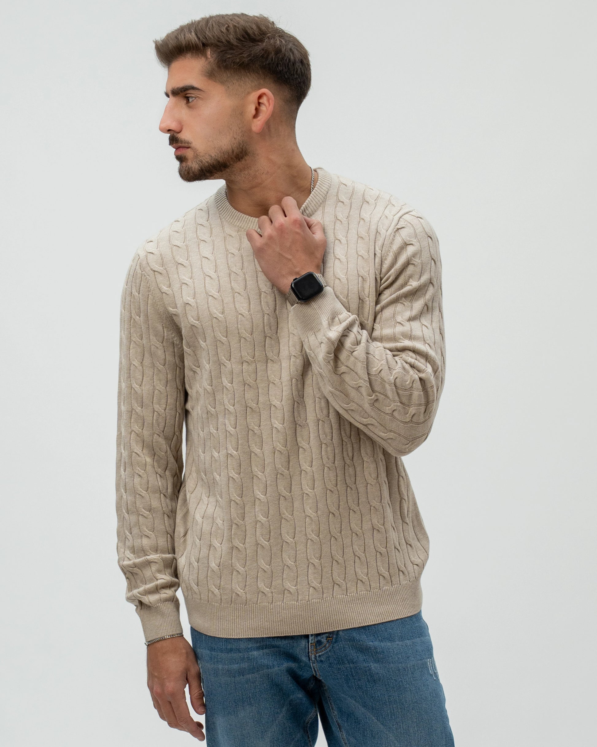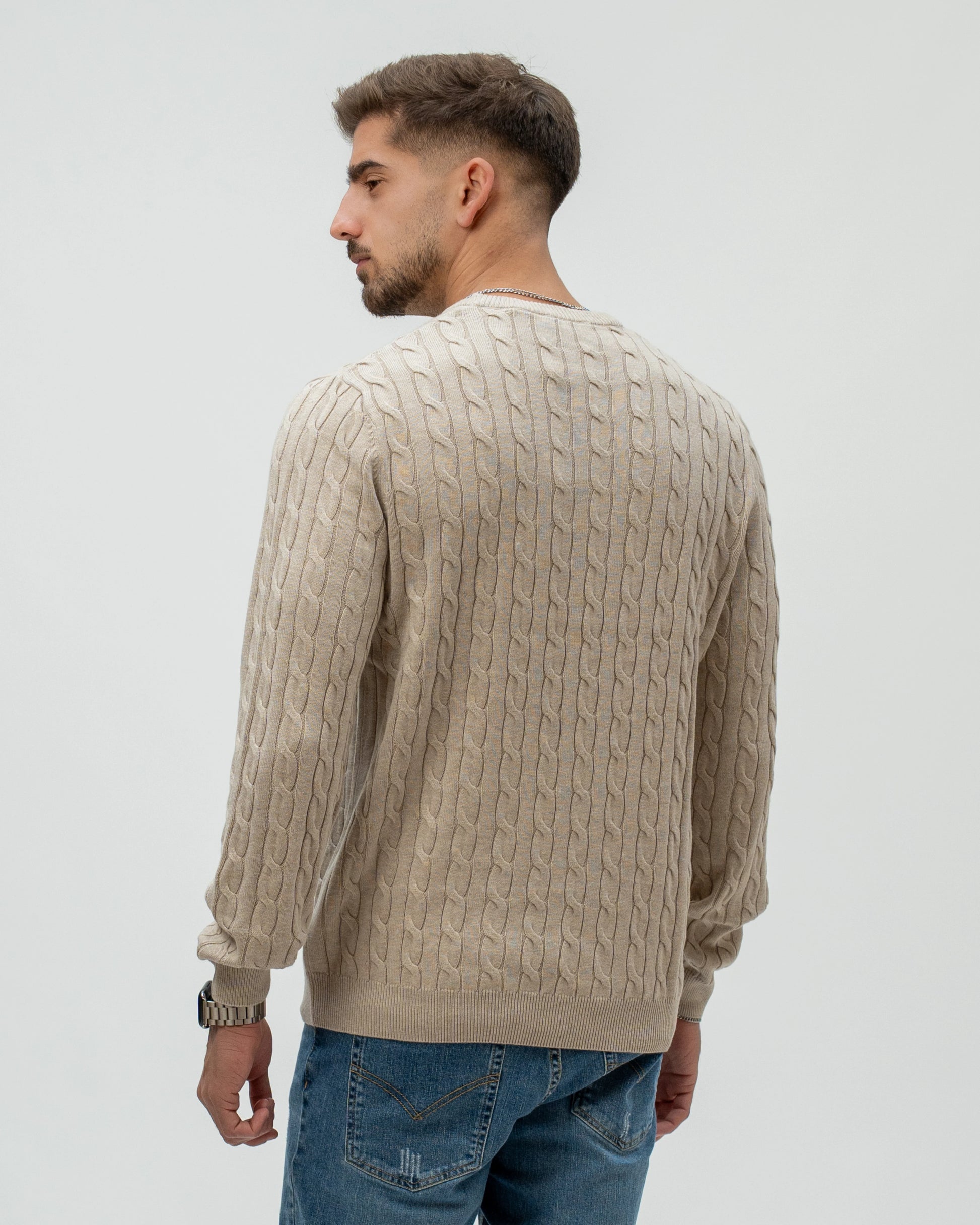 Uma peça que une o clássico padrão cable knit, ideal para o homem que procura um visual sofisticado e versátil, transitando facilmente entre o escritório e eventos casuais.