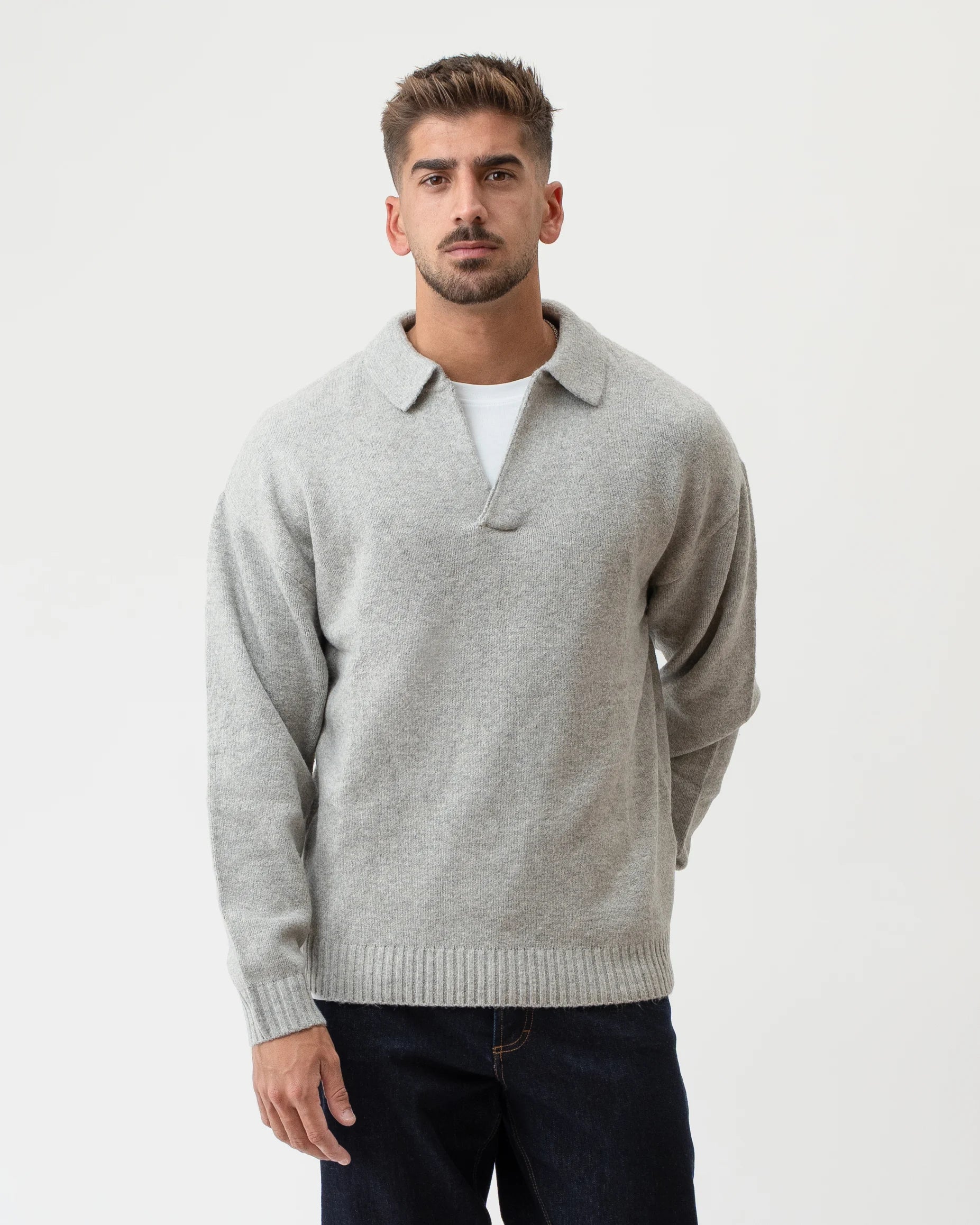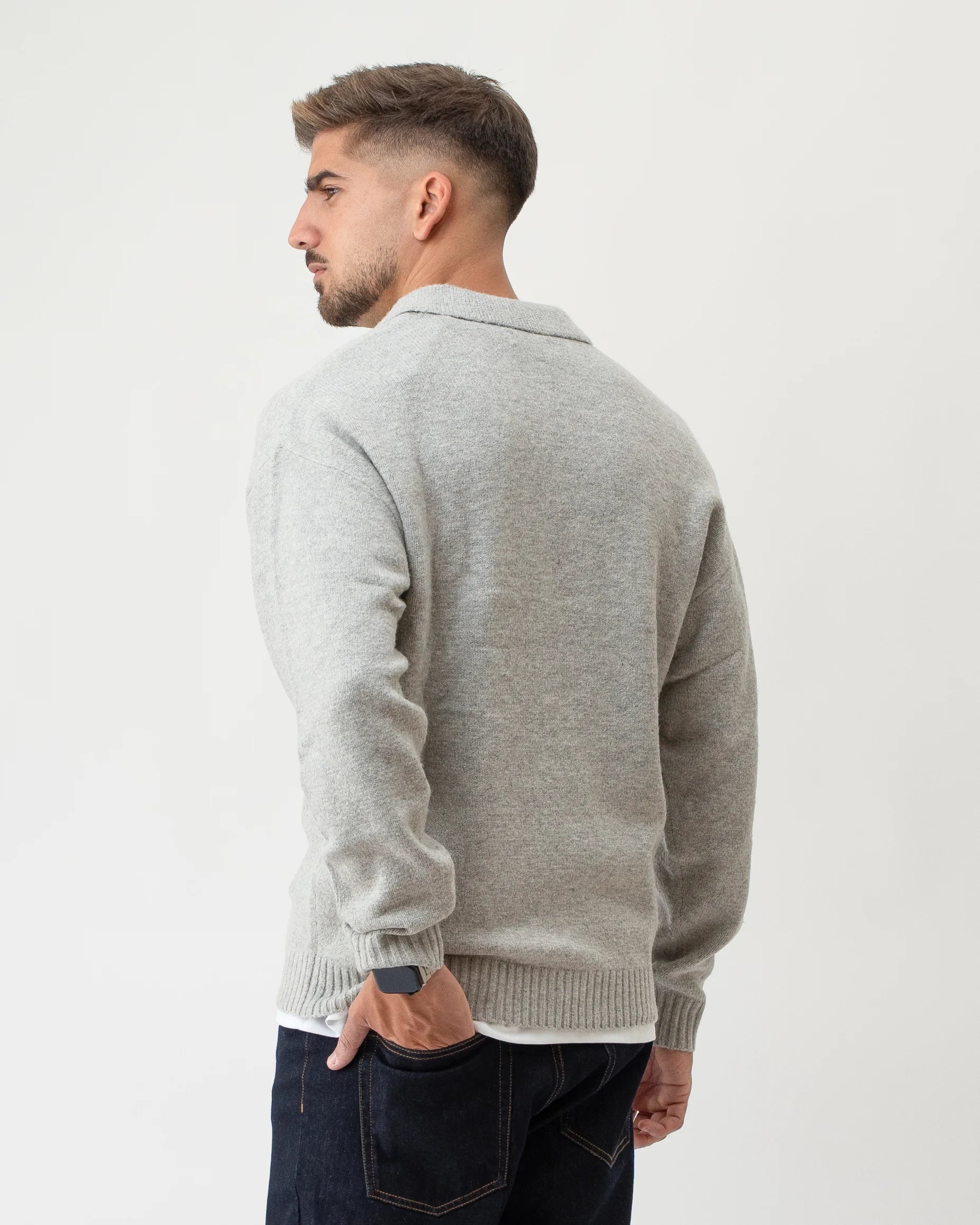 Malha com decote em V com mistura de lã, confortável e com o Fit mais relaxado.