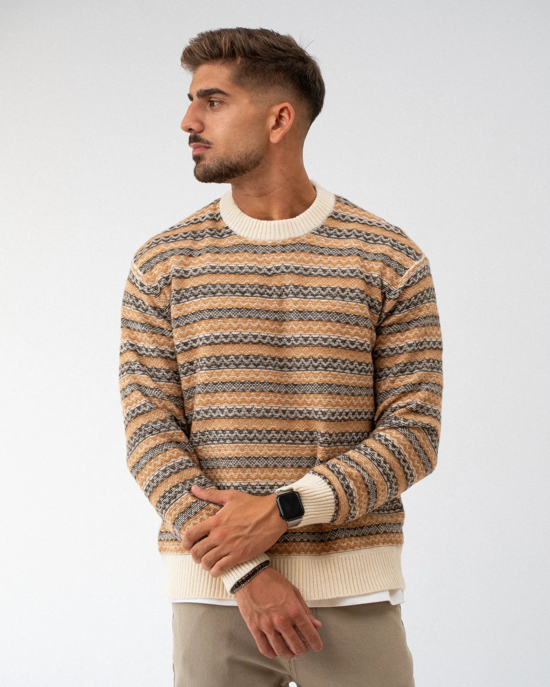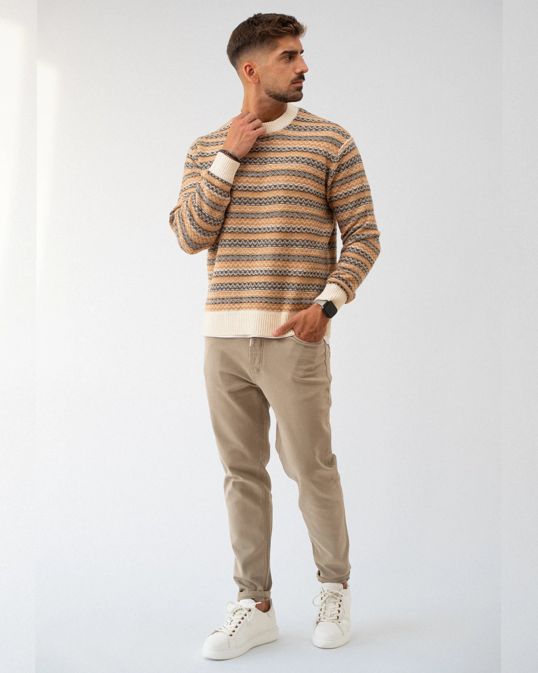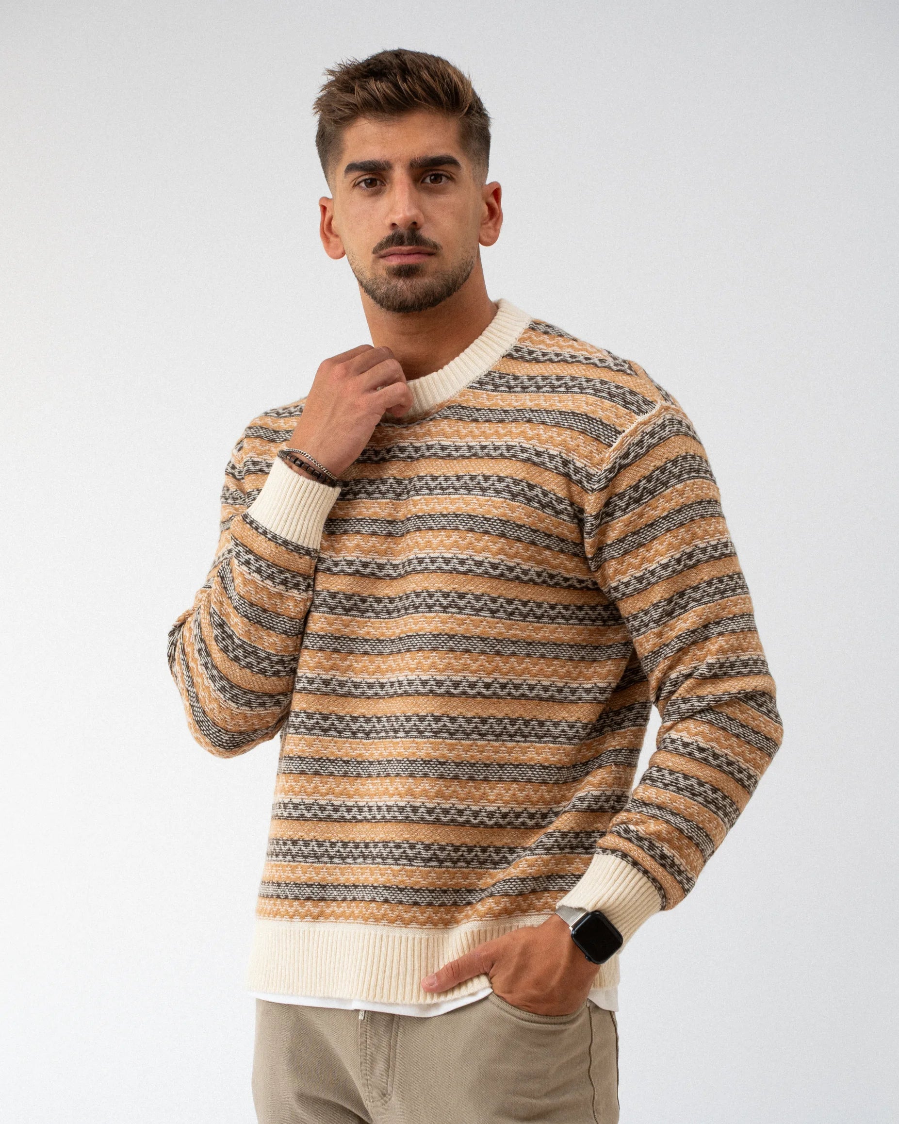 Camisola de mistura de Lã, decote redondo, manga comprida, acabamento canelado, corte relaxed fit.