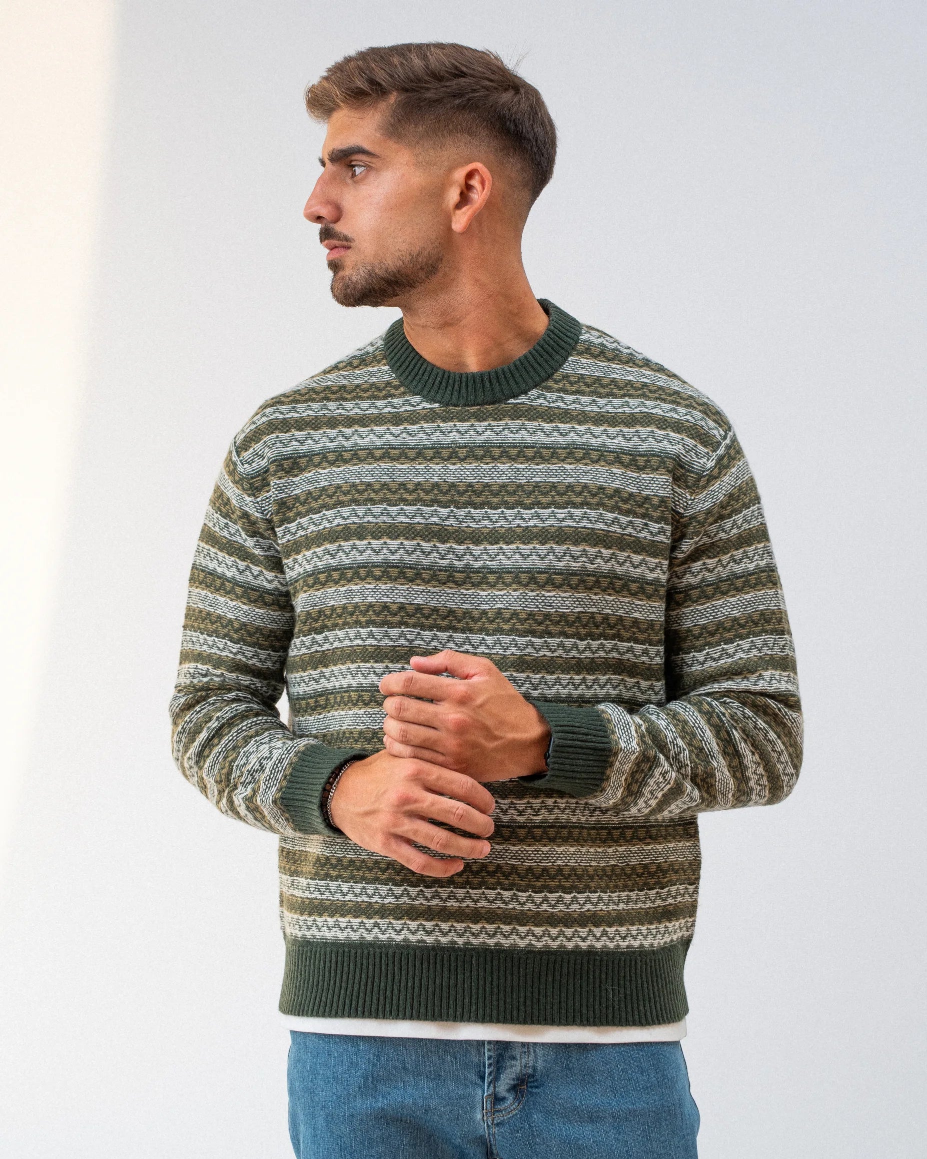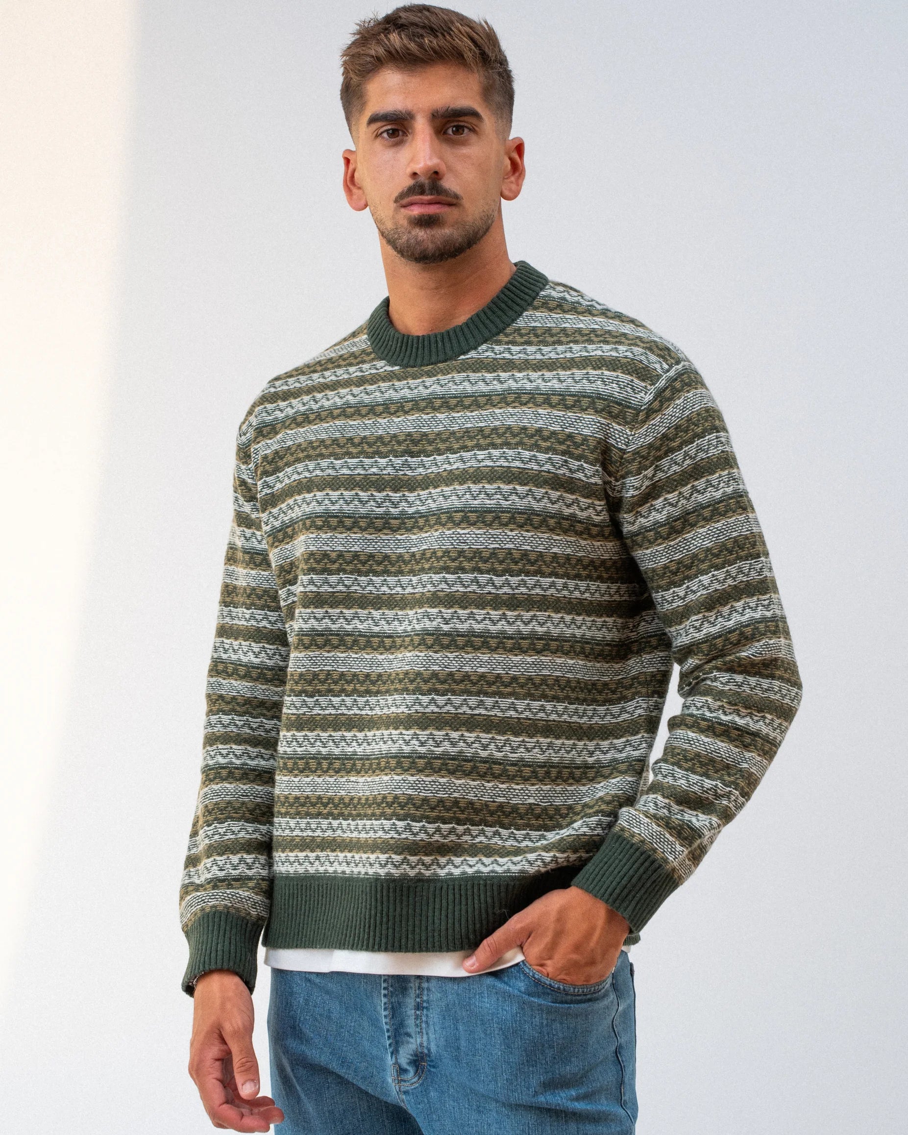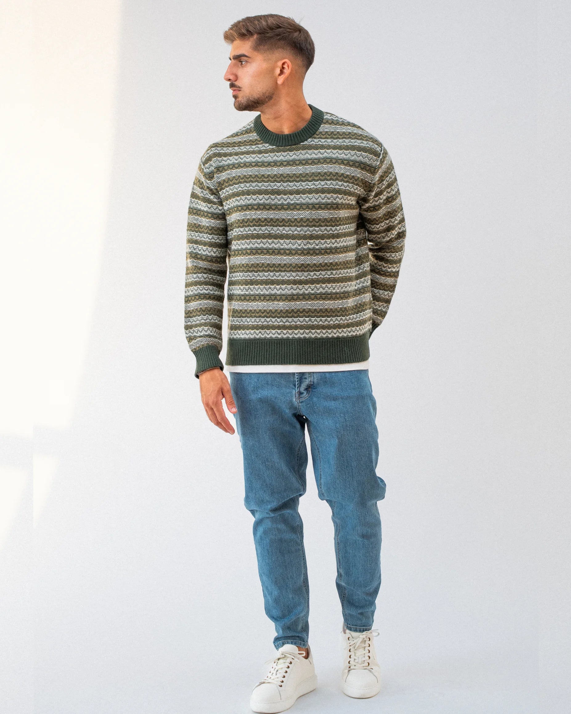 Camisola de mistura de Lã, decote redondo, manga comprida, acabamento canelado, corte relaxed fit.