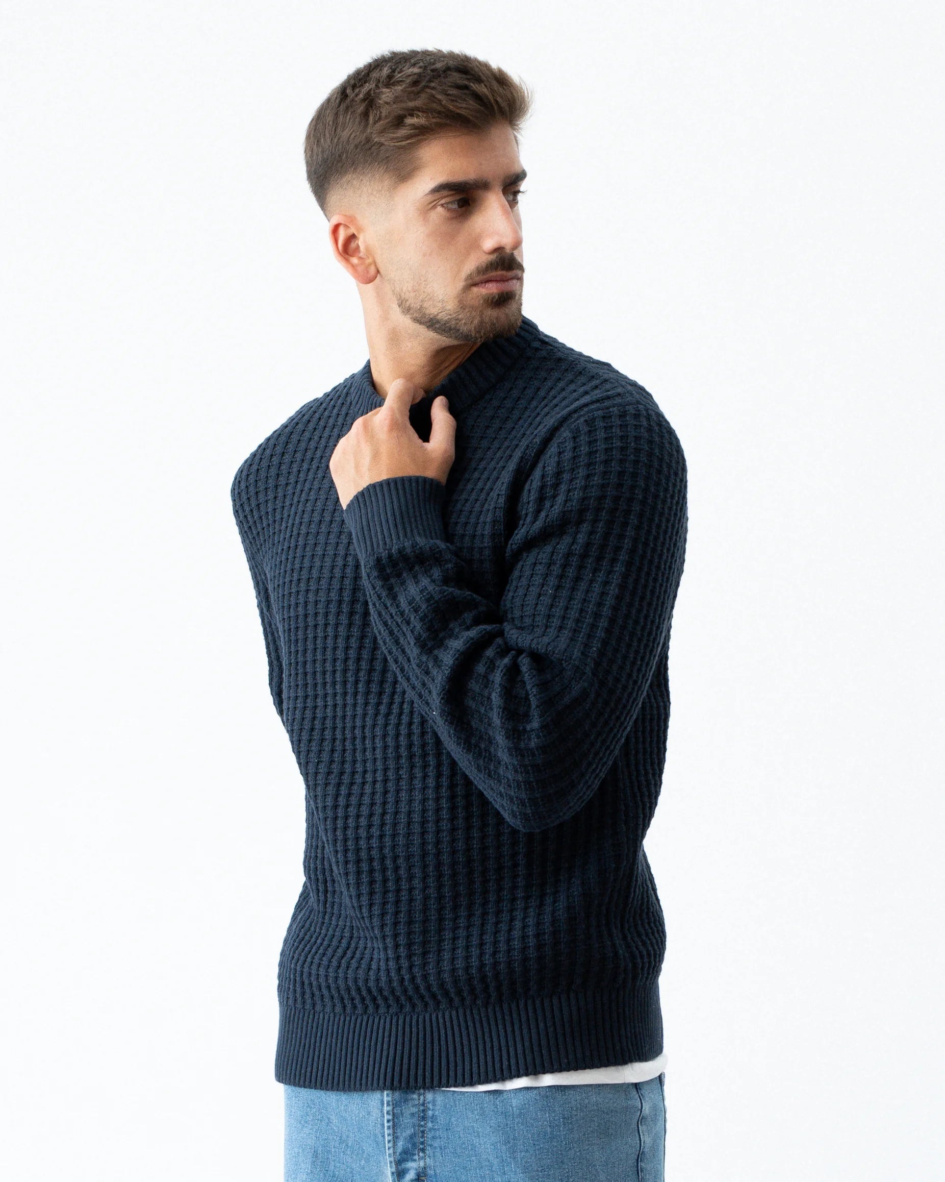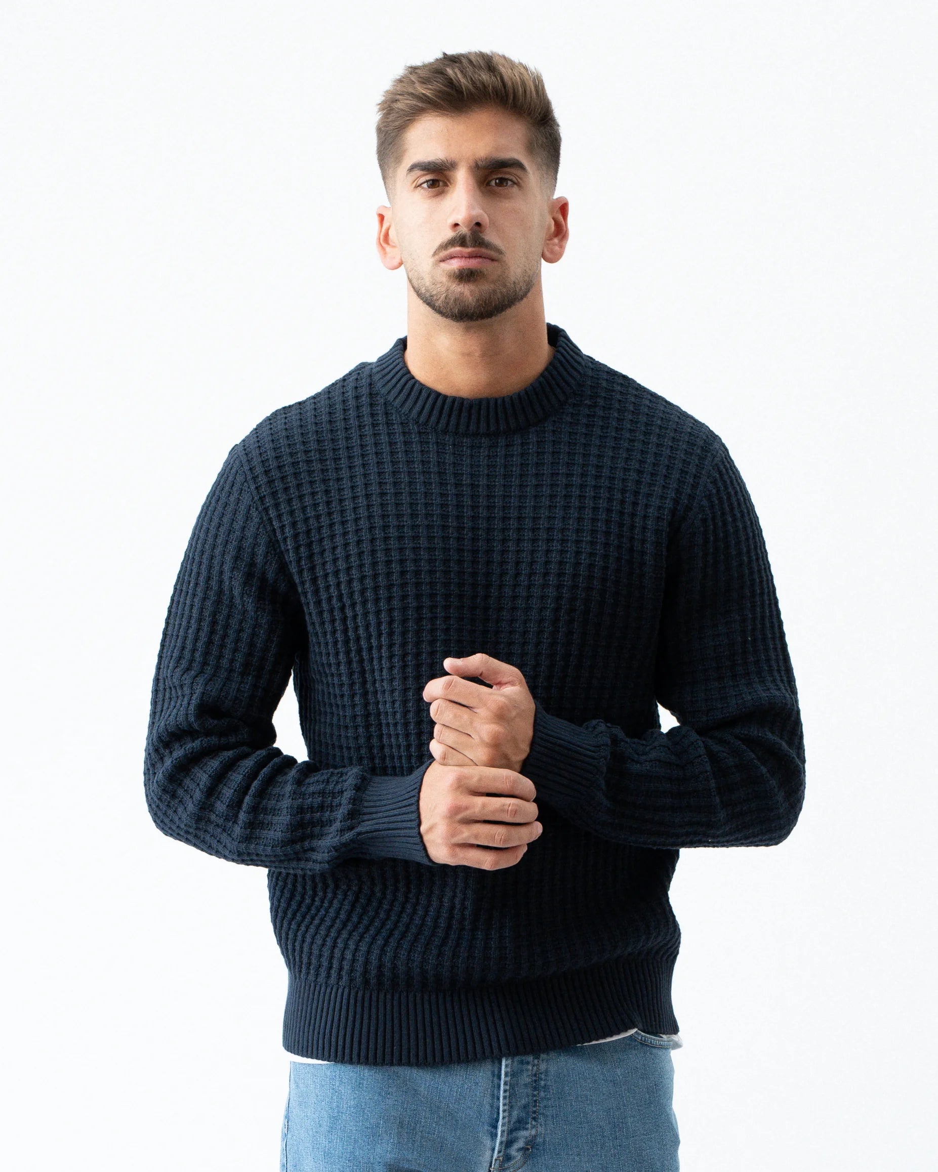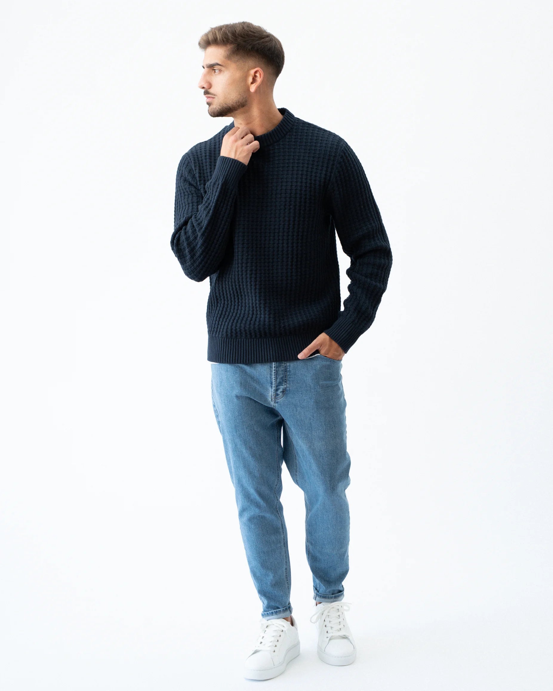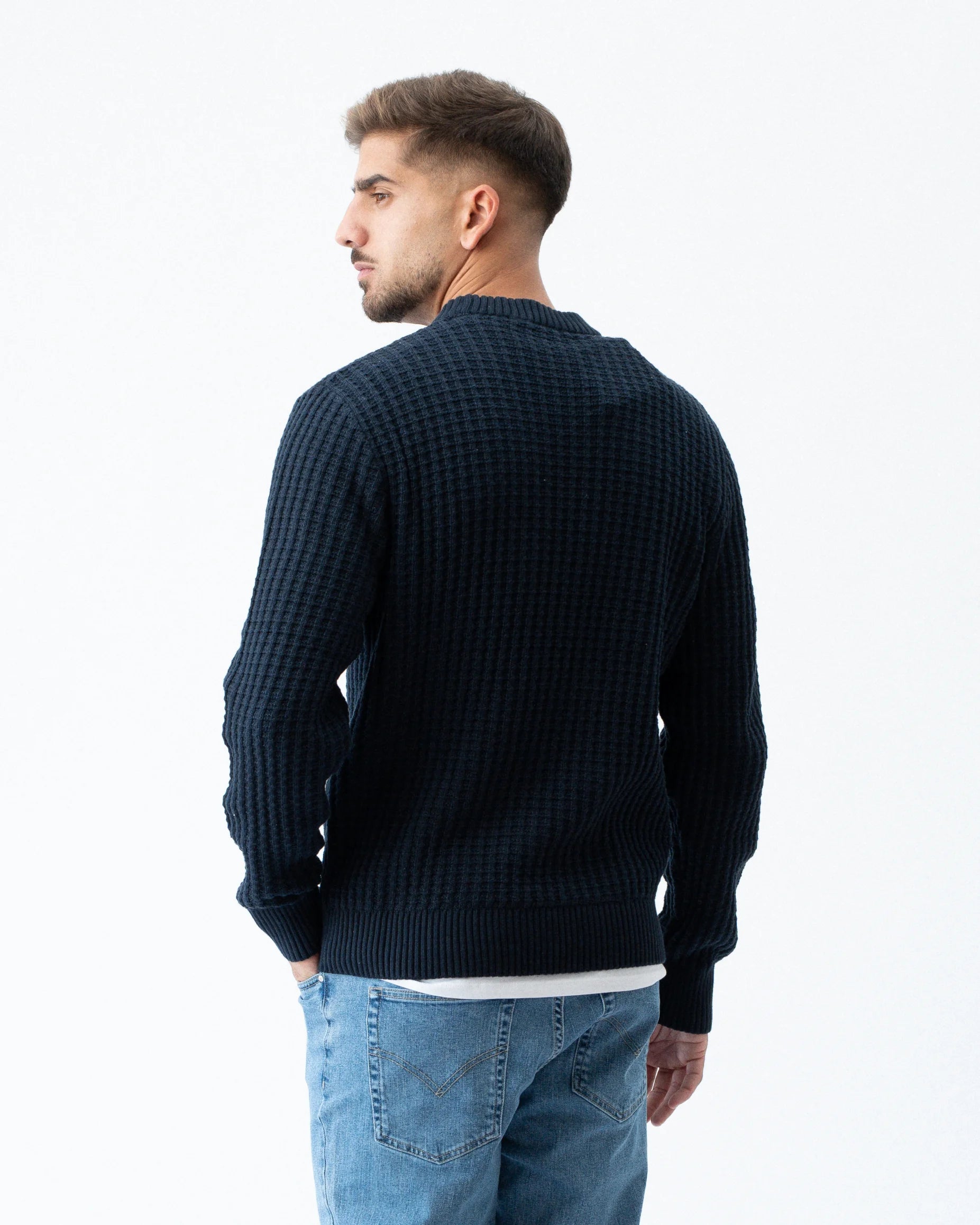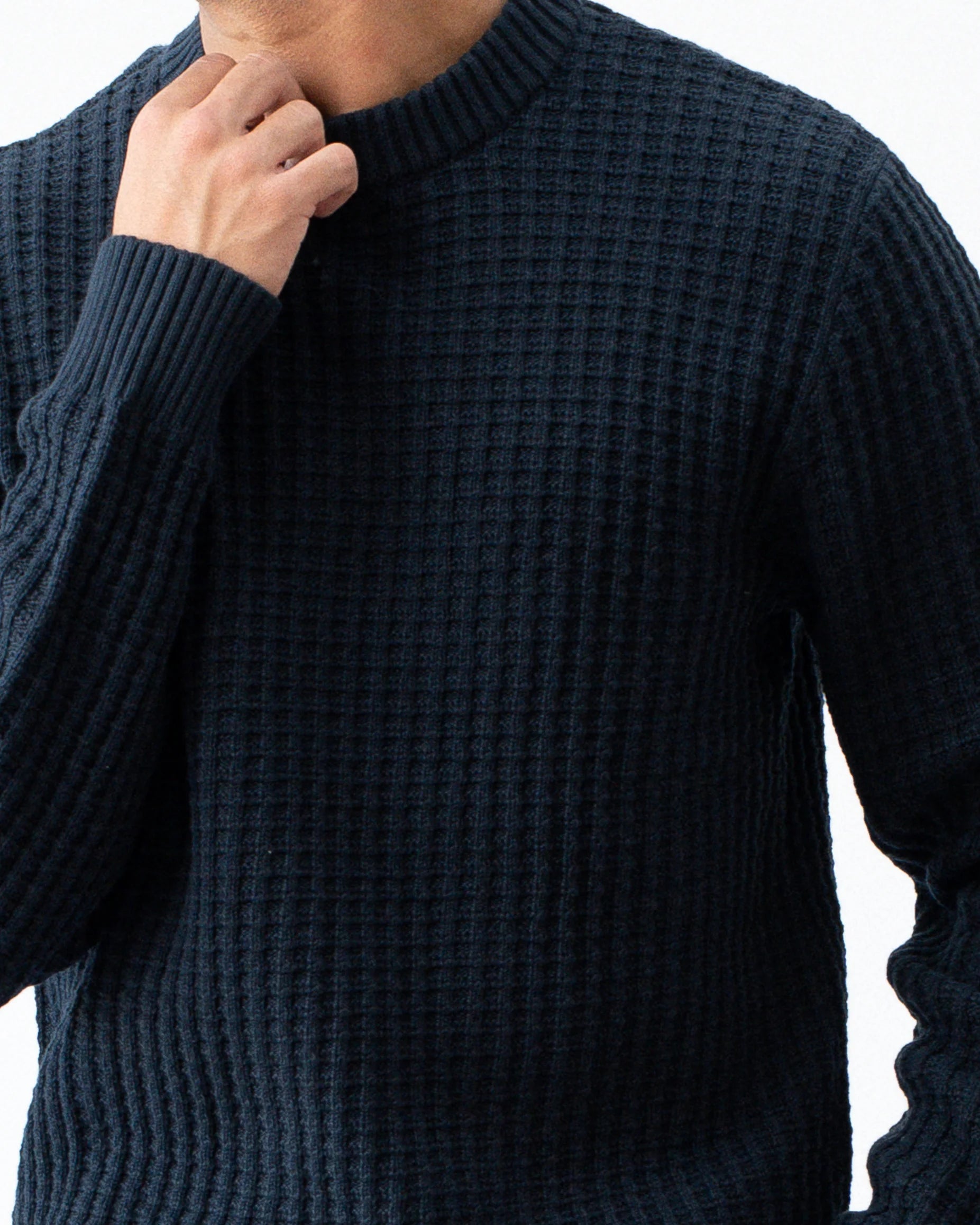 Camisola de malha 100% Algodão / Gola redonda / Mangas compridas / Punhos canelados / Corte Regular