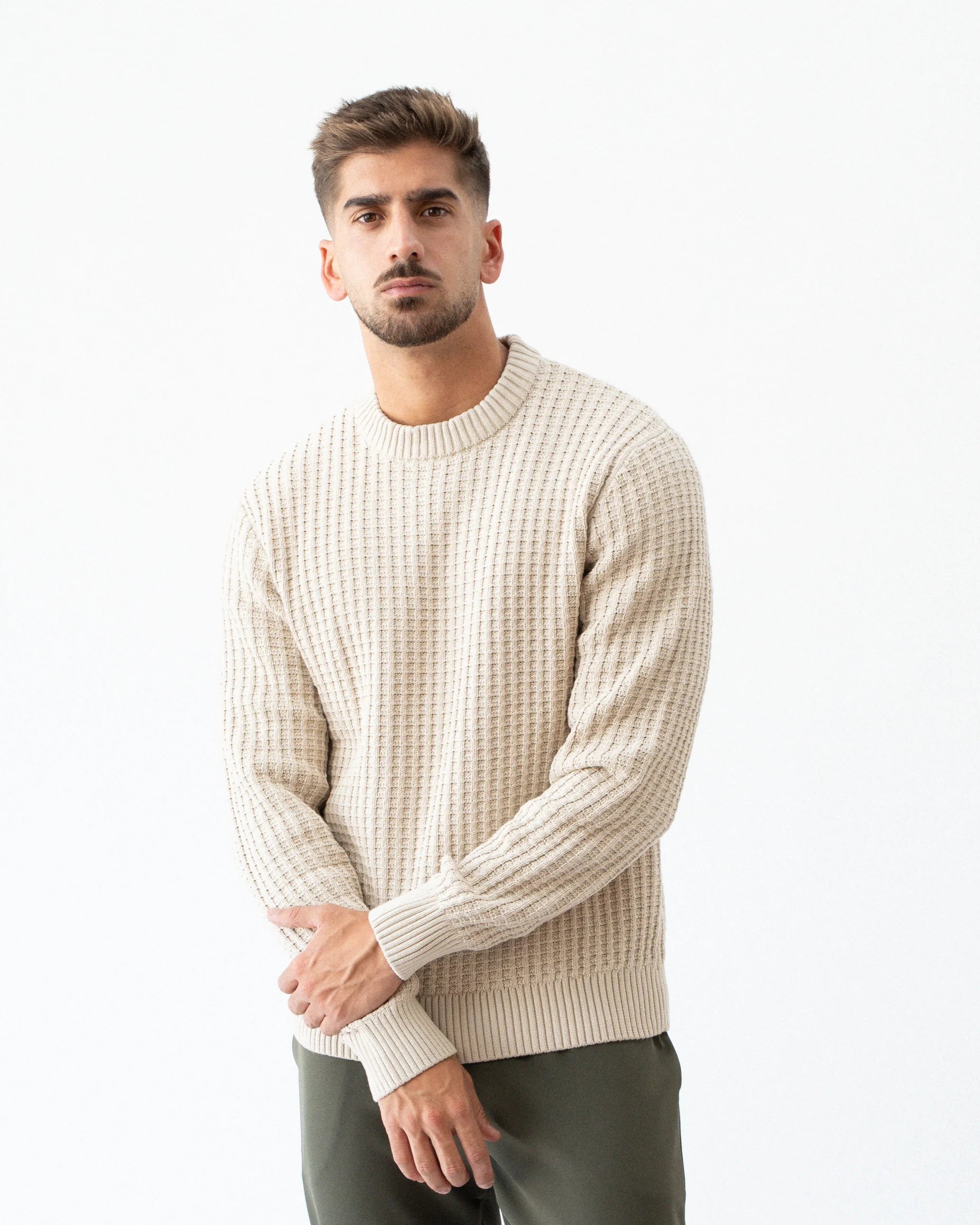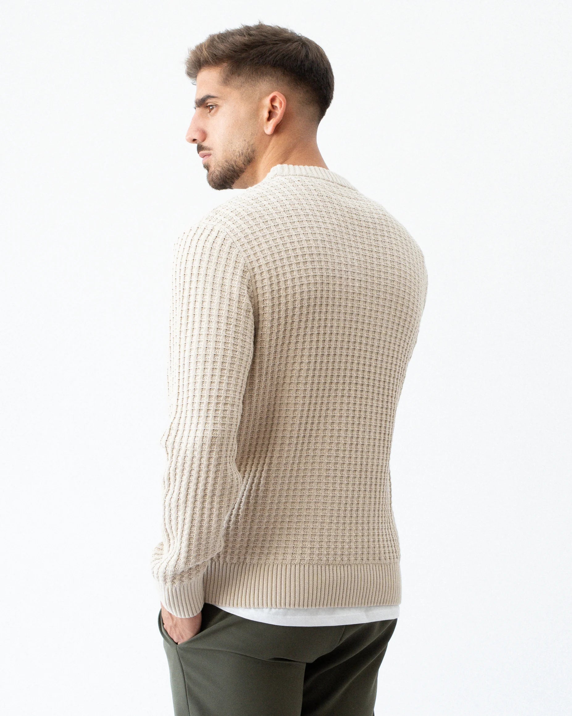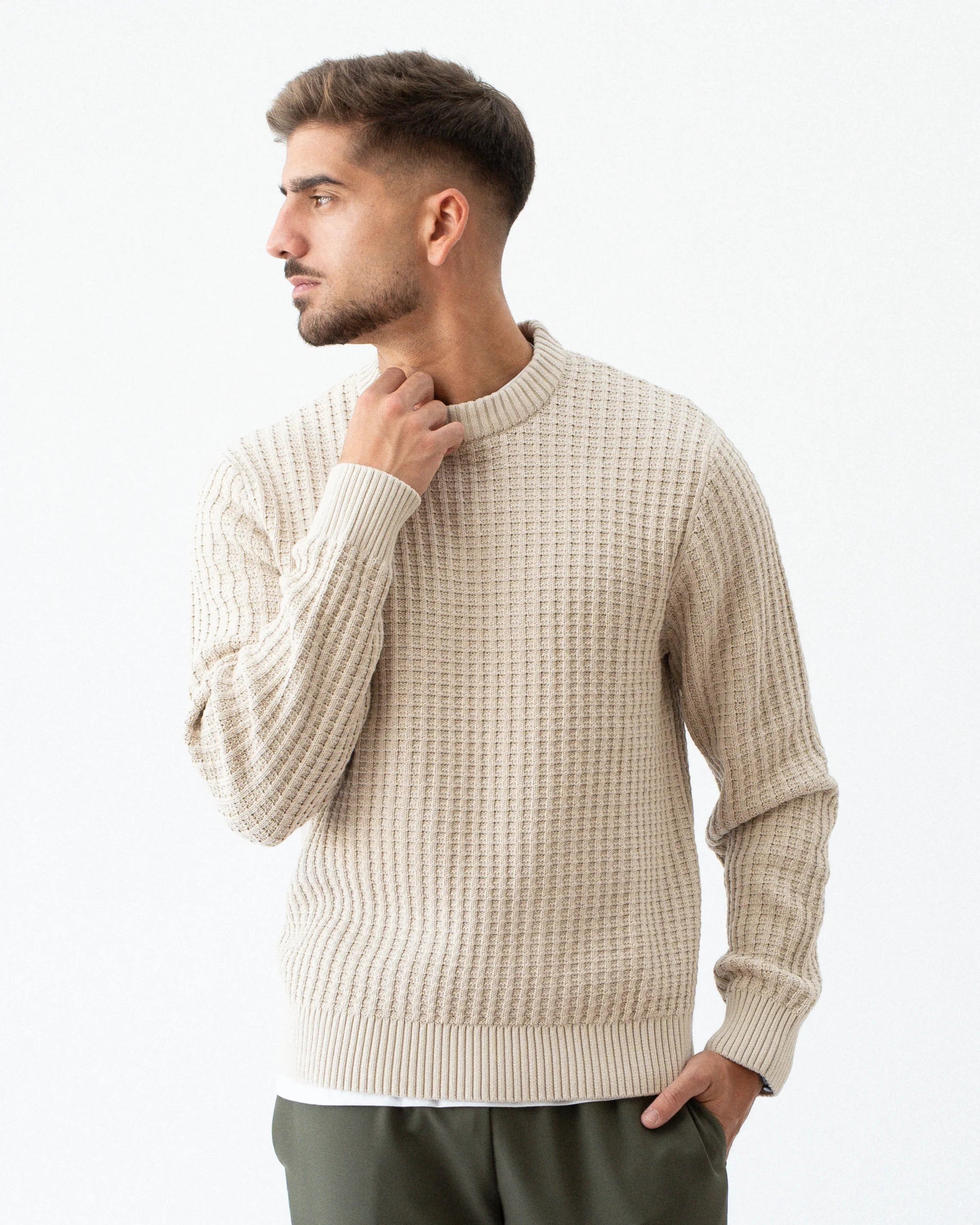 Camisola de malha 100% Algodão / Gola redonda / Mangas compridas / Punhos canelados / Corte Regular