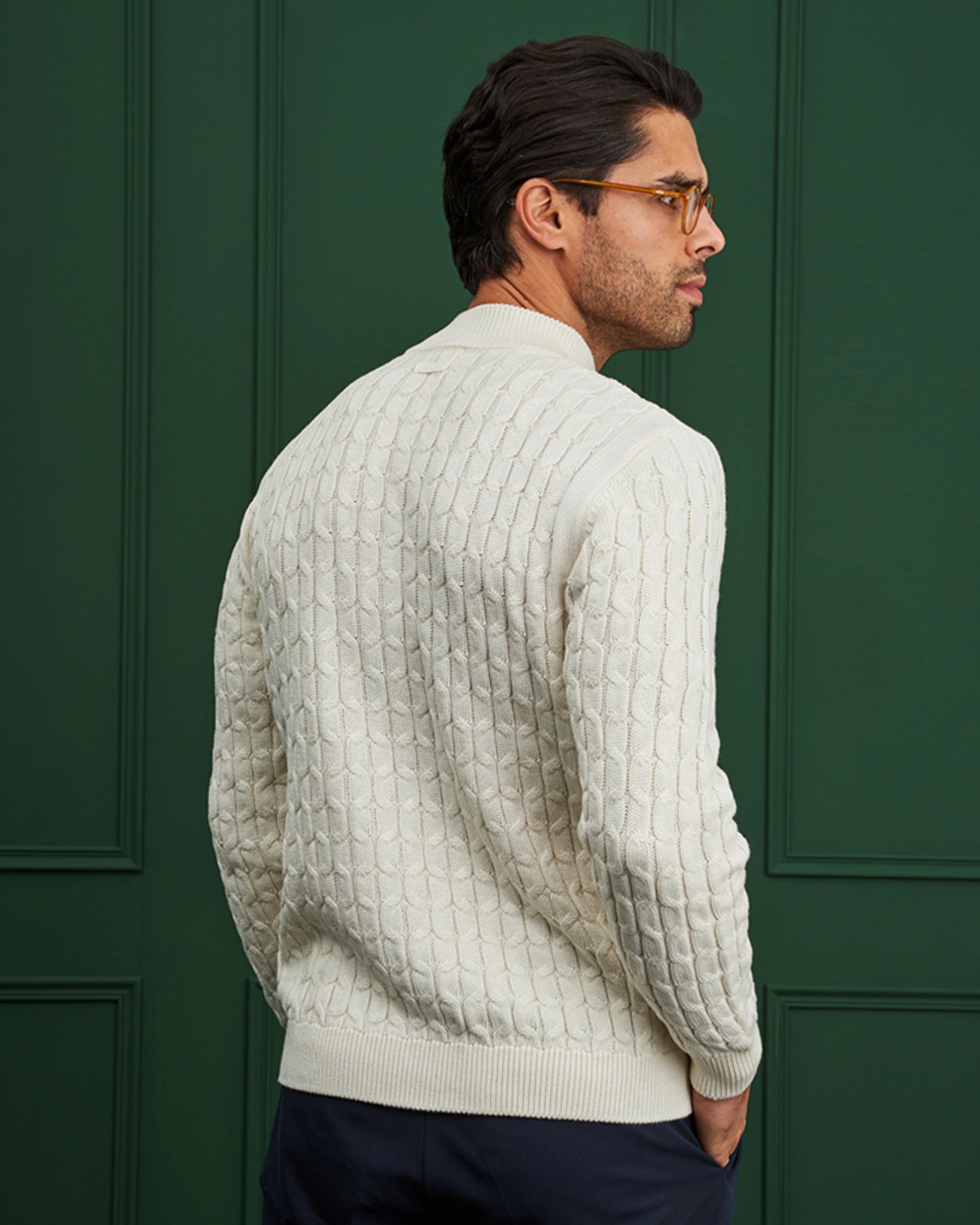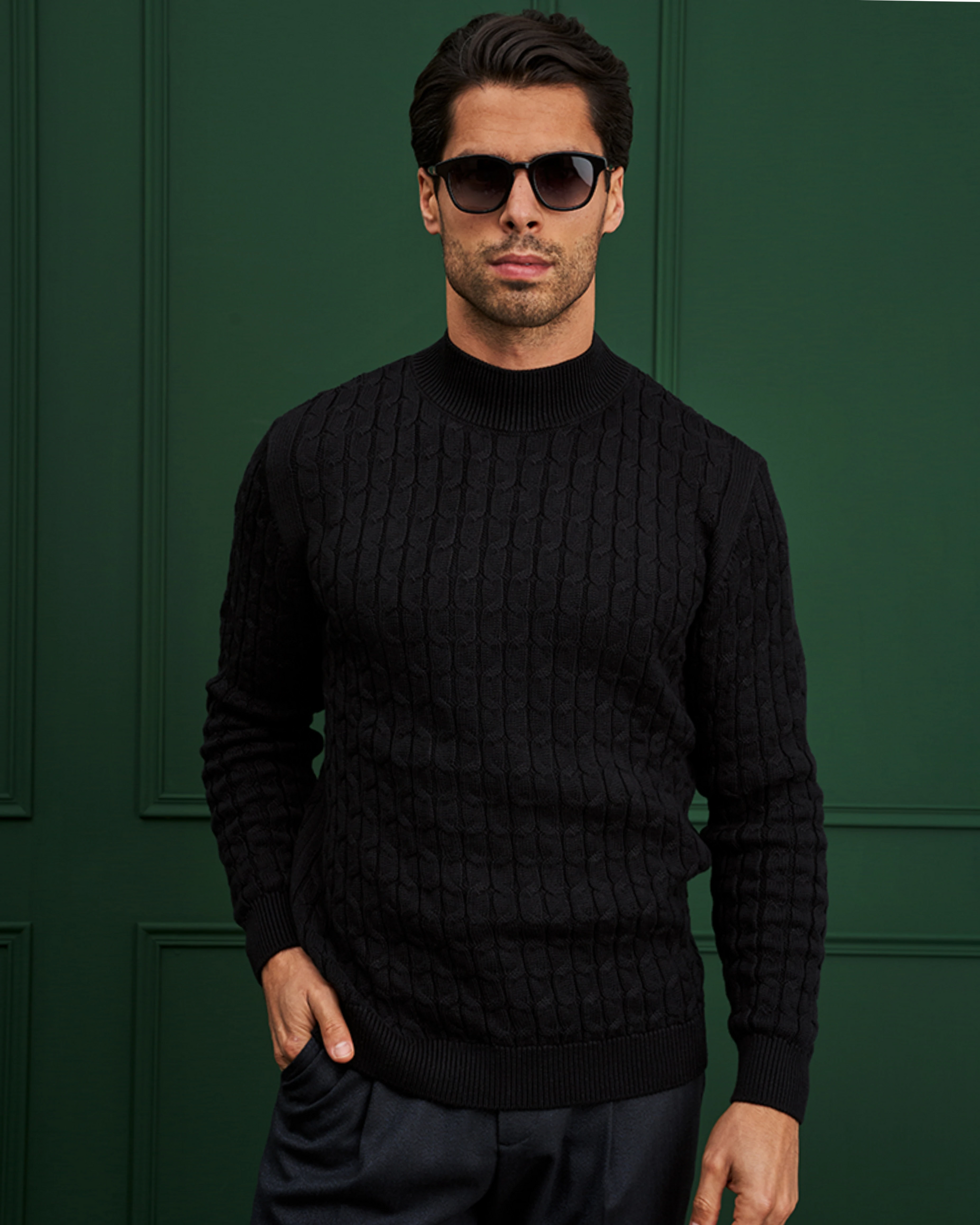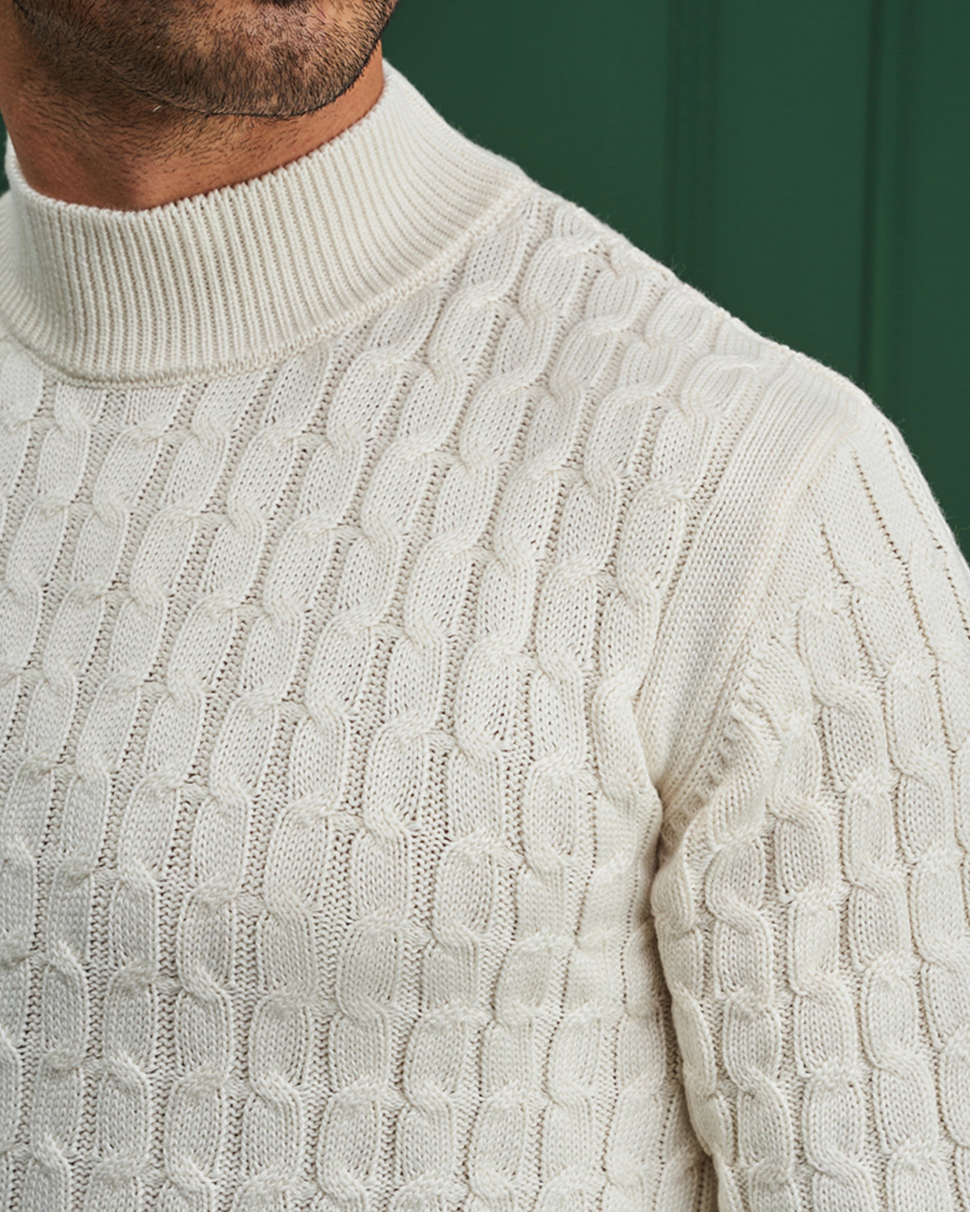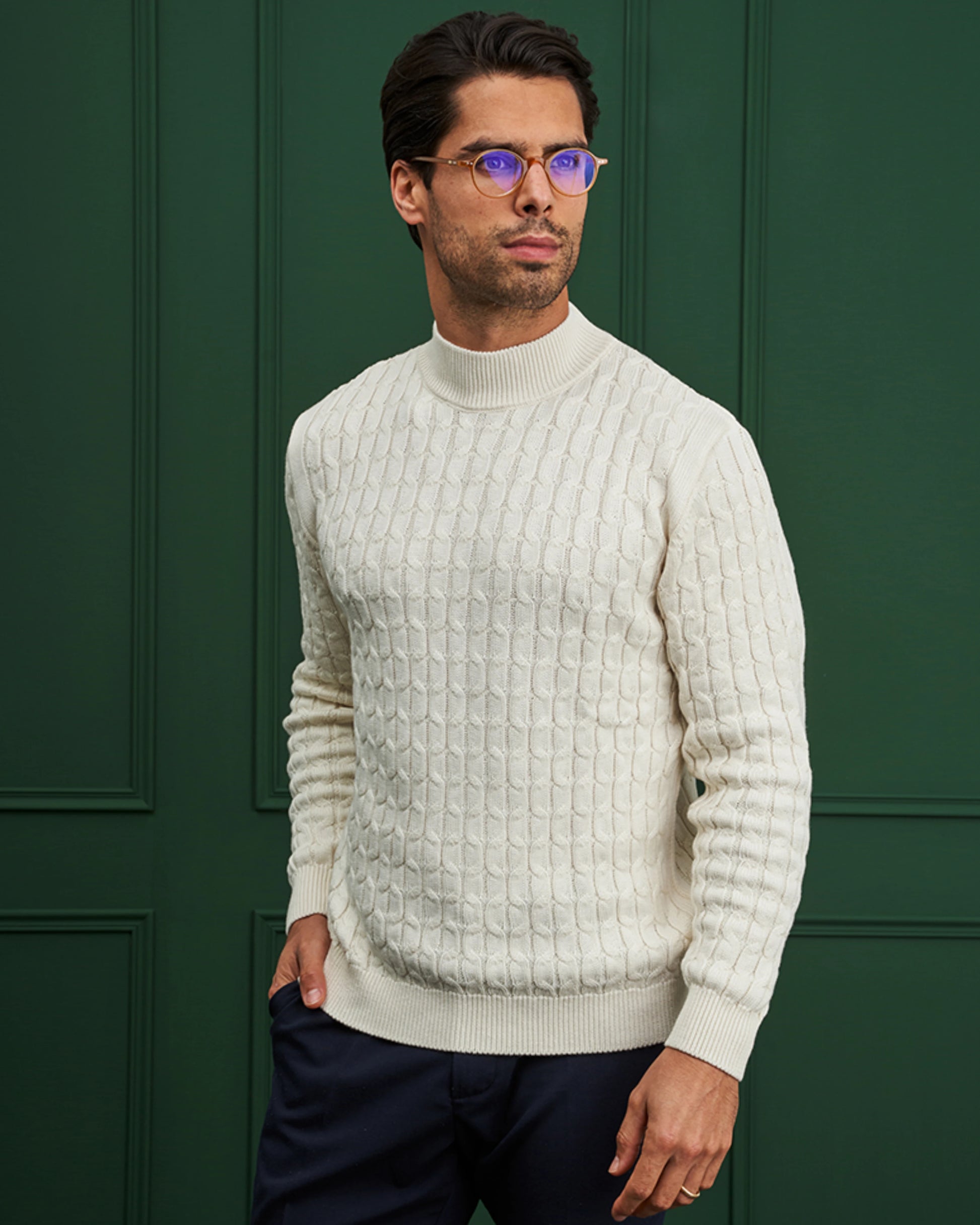 A camisola de malha meia gola estruturada combina conforto e textura sofisticada. Um modelo com corte regular, que garante liberdade de movimentos e caimento confortável no corpo.