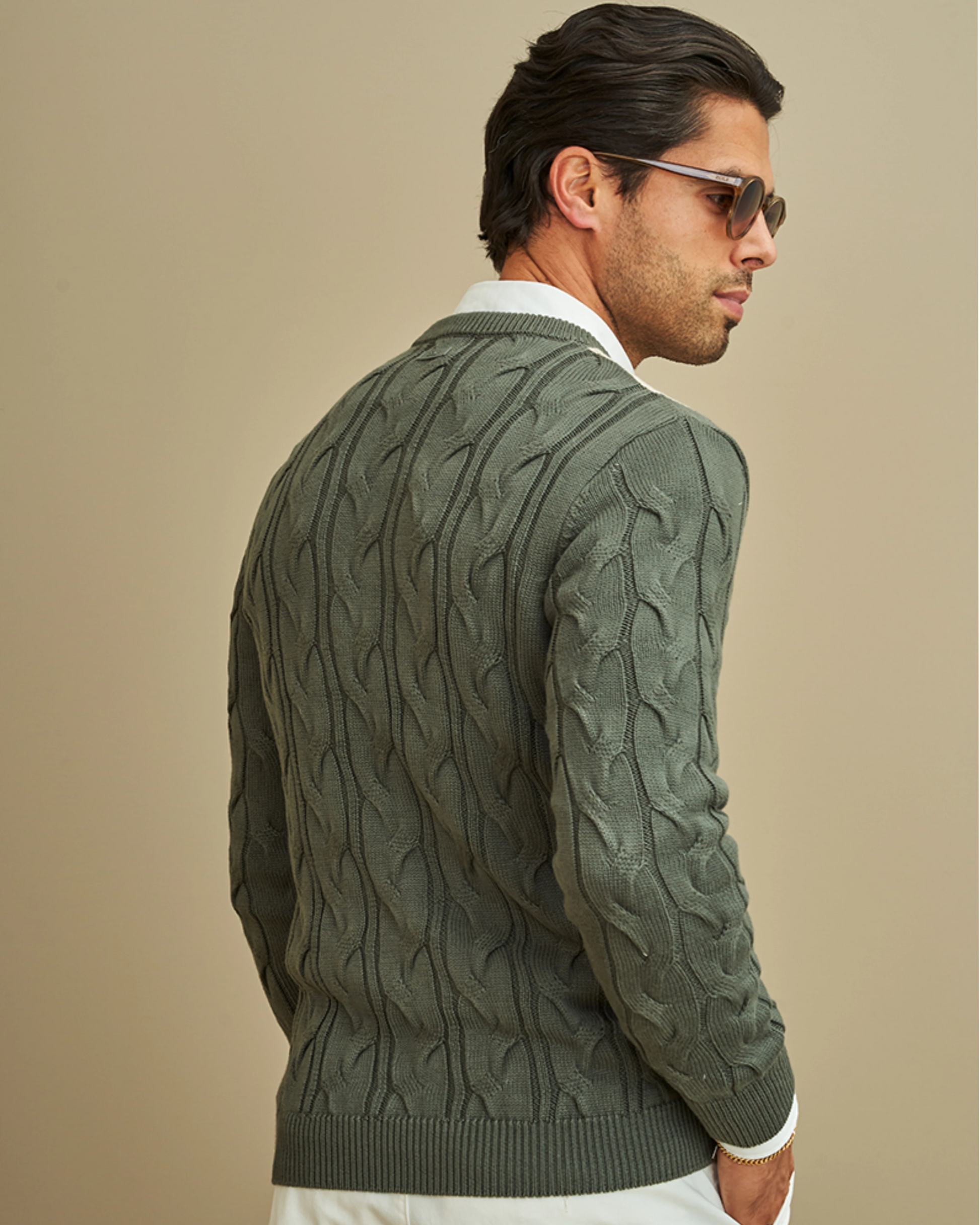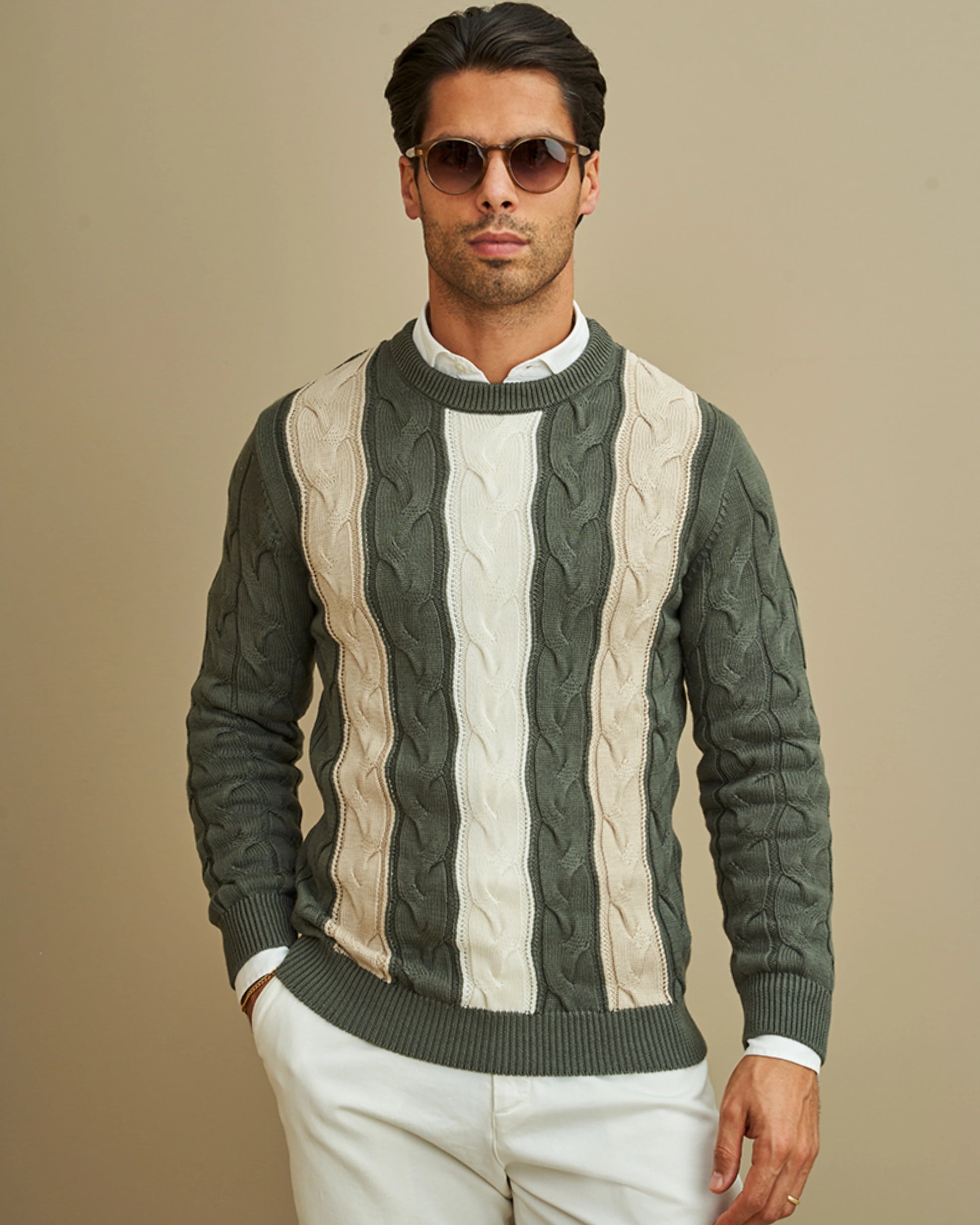 Camisola Zolf Tricot com Riscas e Trança Verde Militar