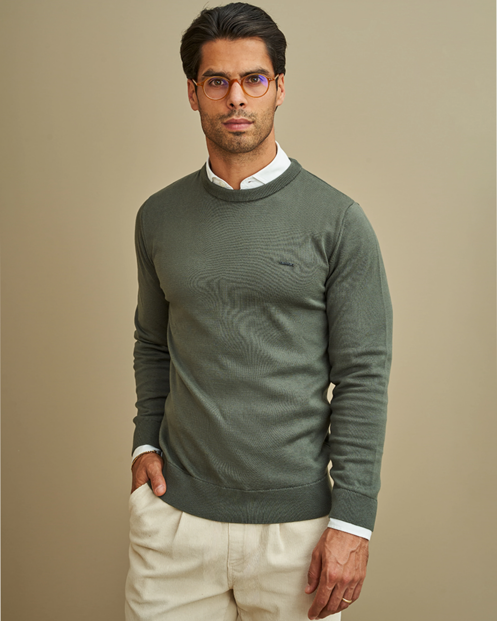 Camisola Zolf Tricot Decote Redondo Verde Militar