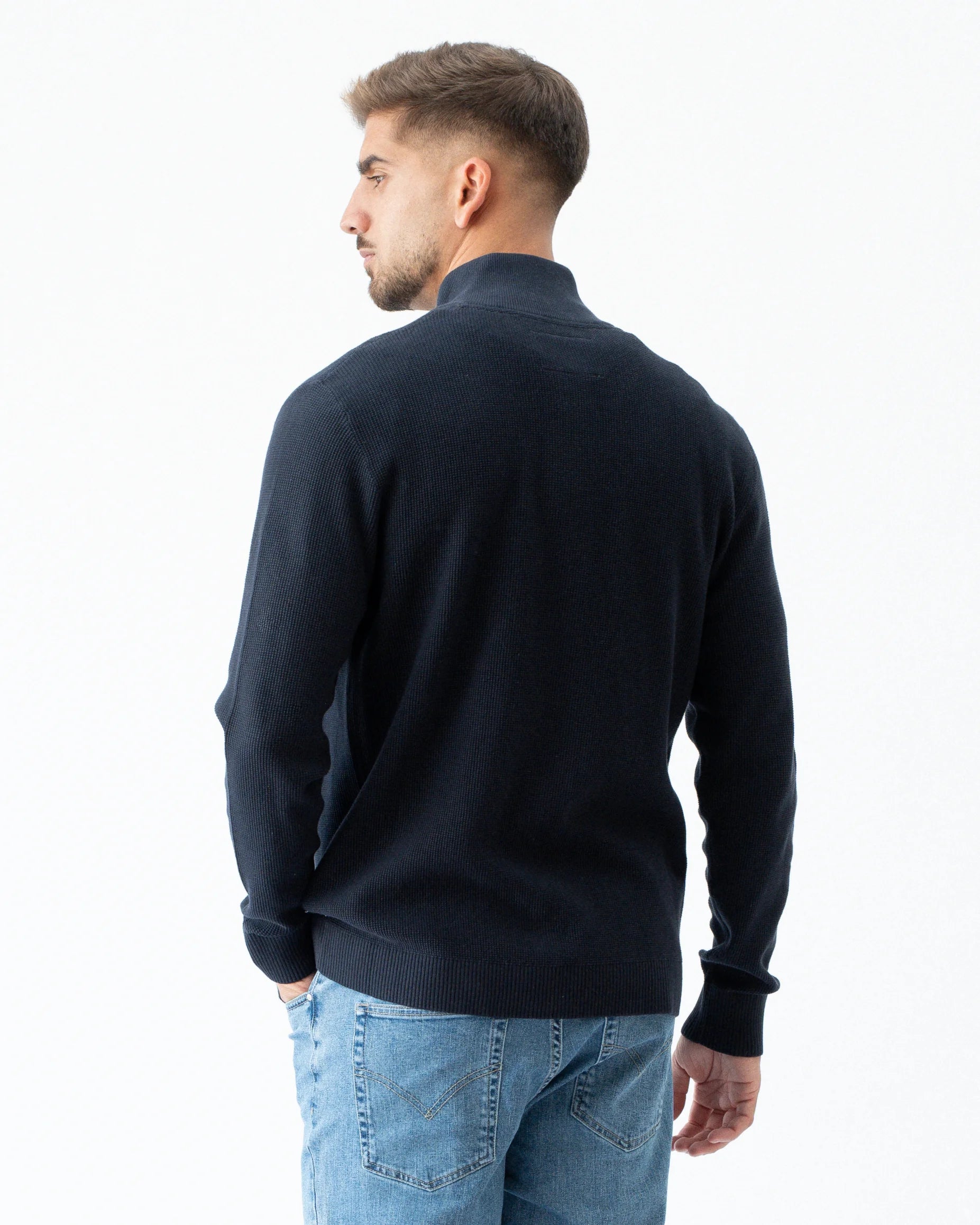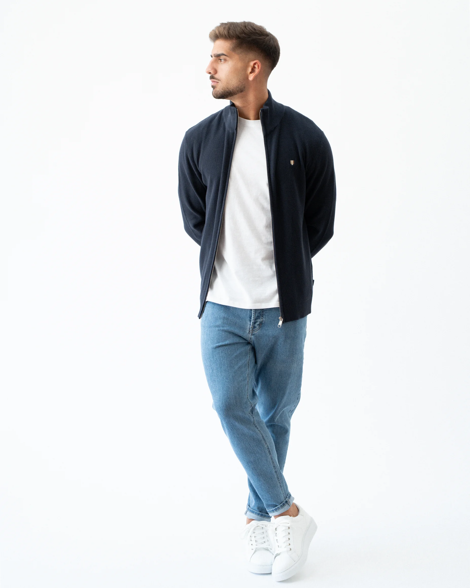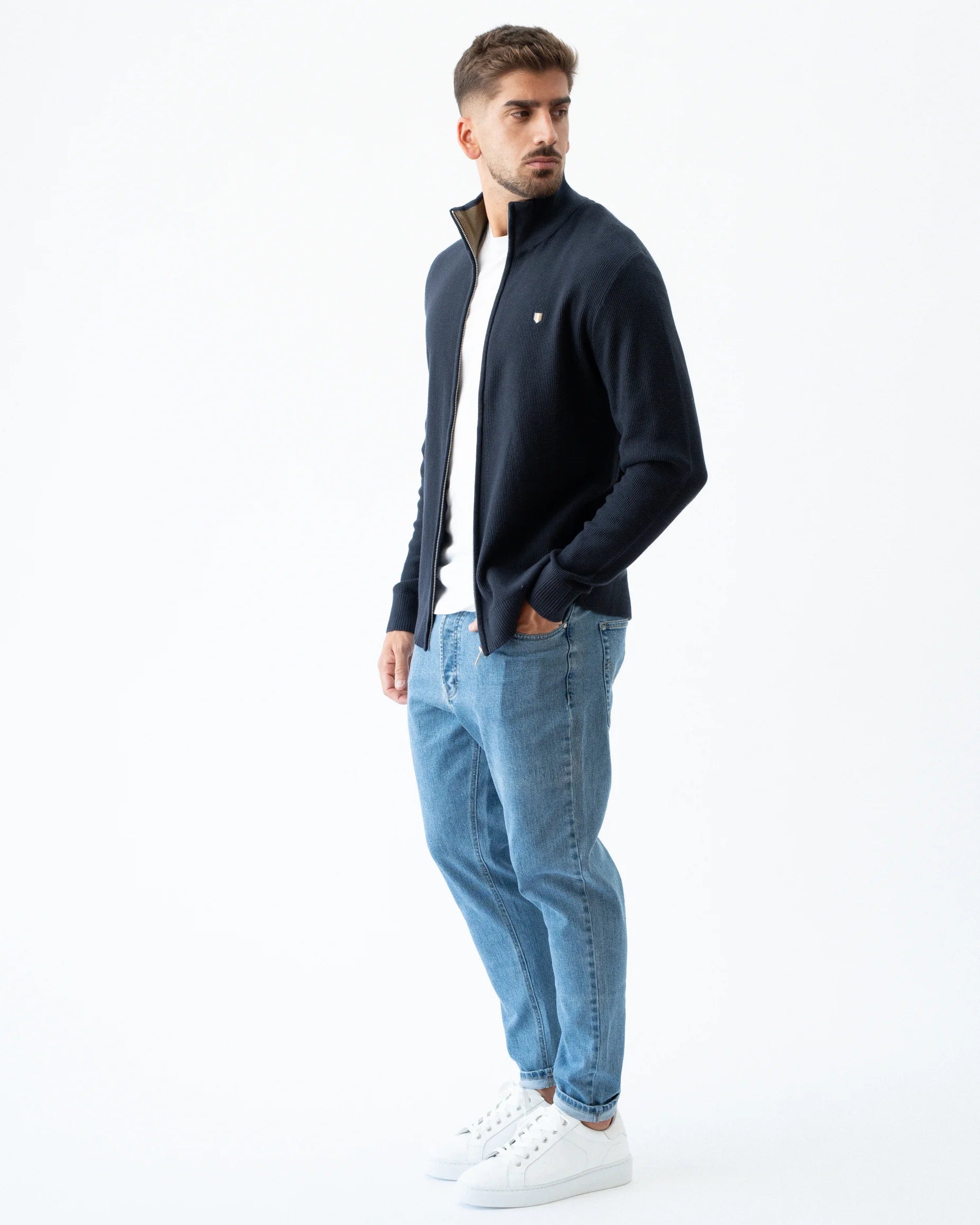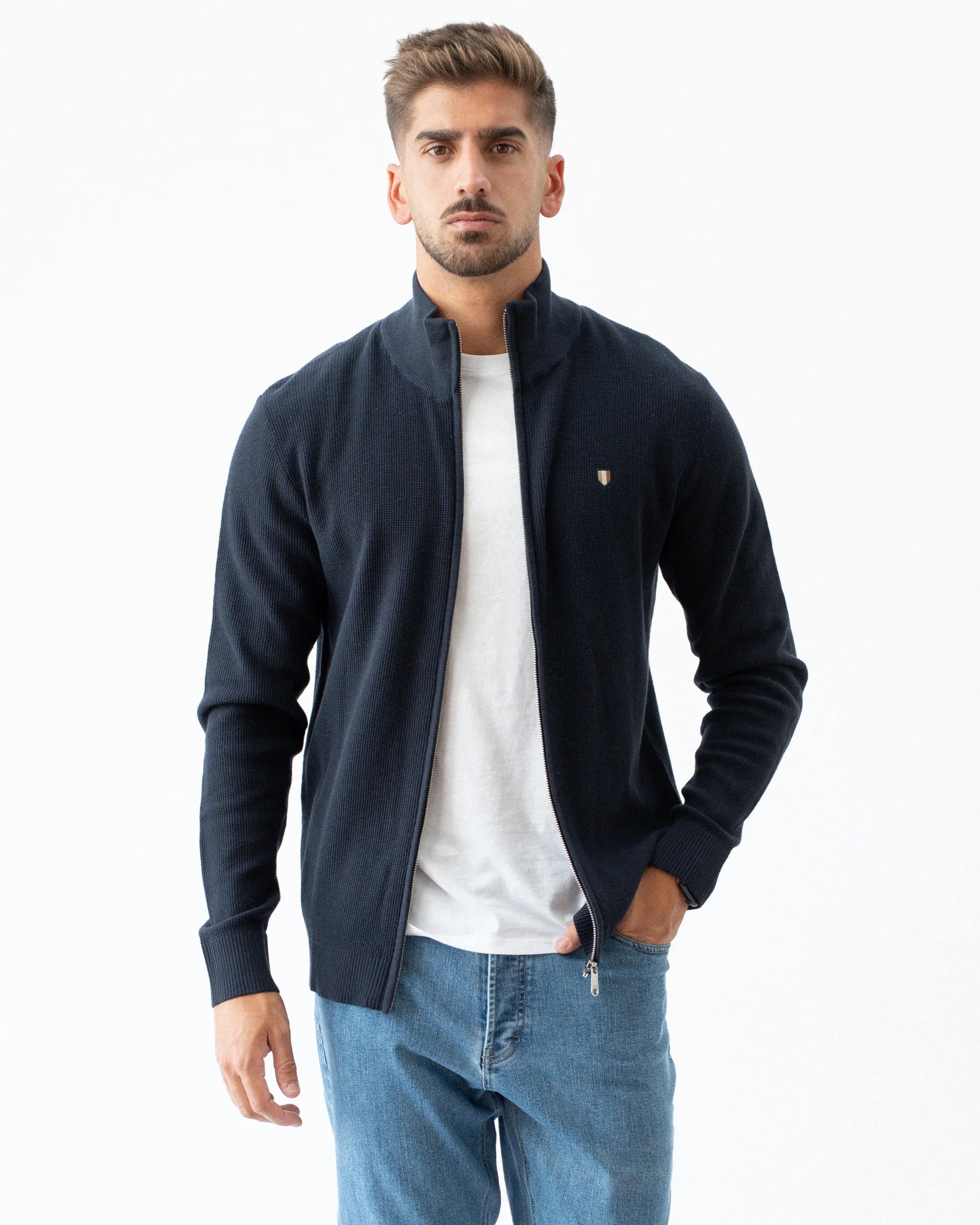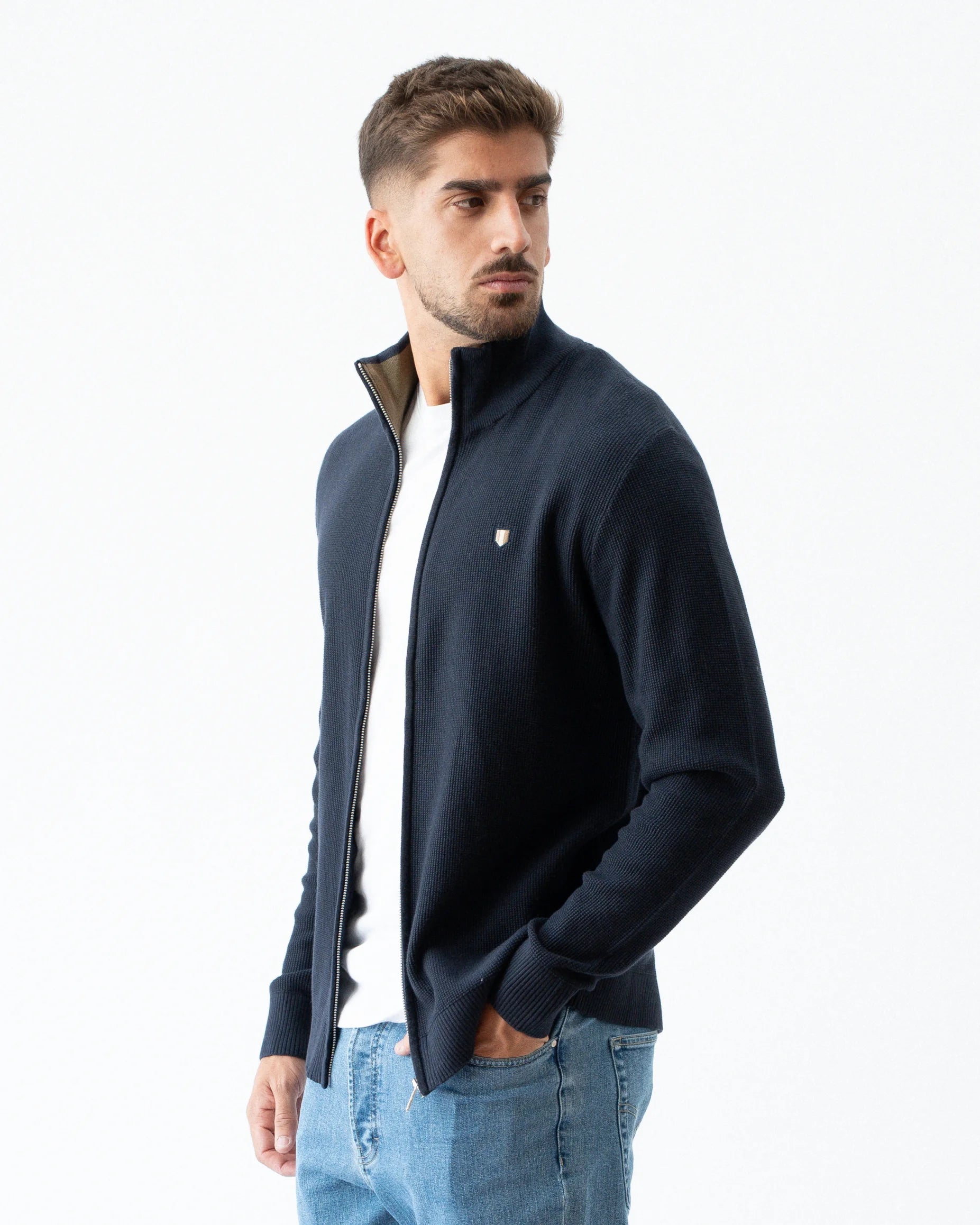 Cardigan de fecho em malha de 100% algodão. Manga comprida, punhos canelados e de corte regular.