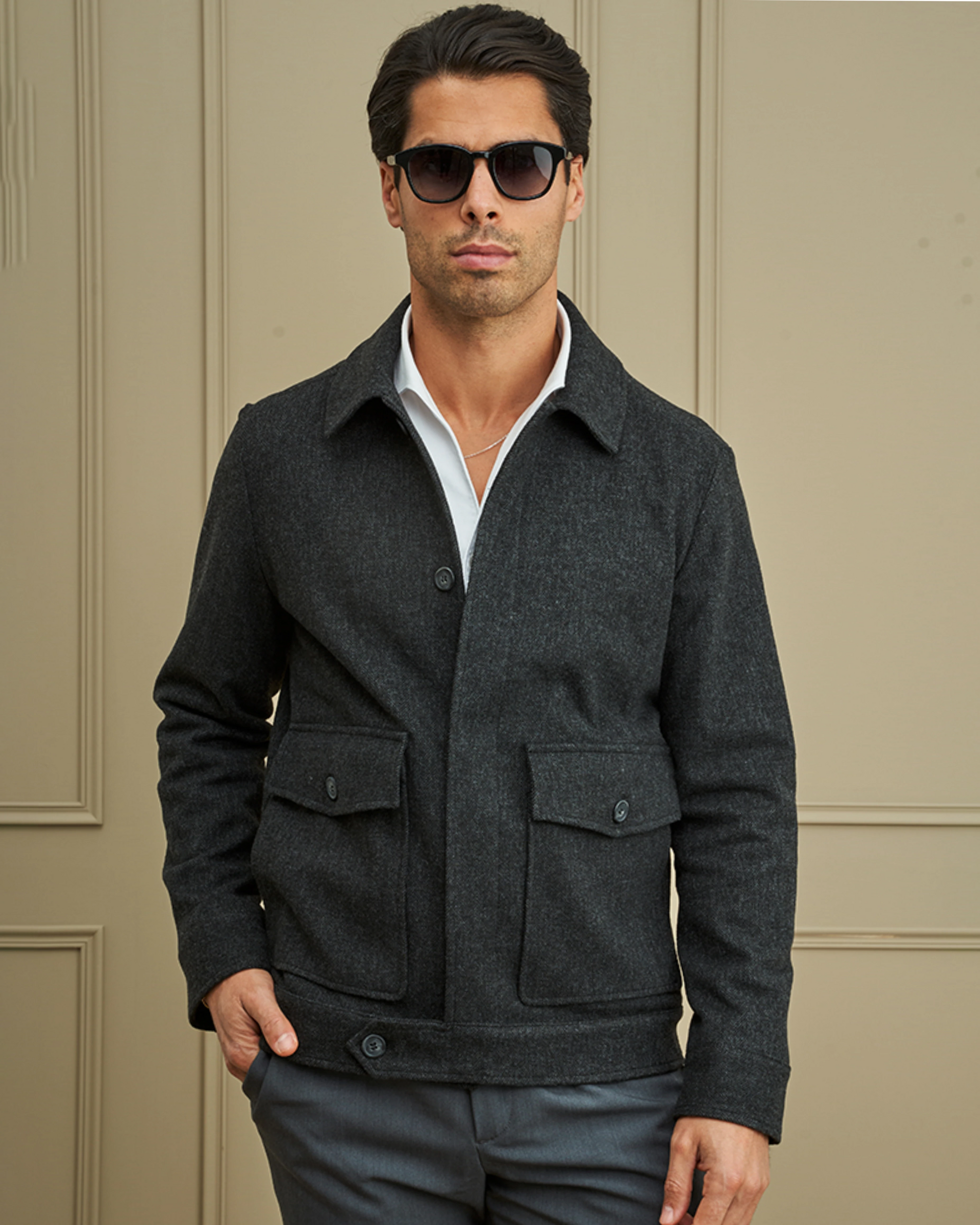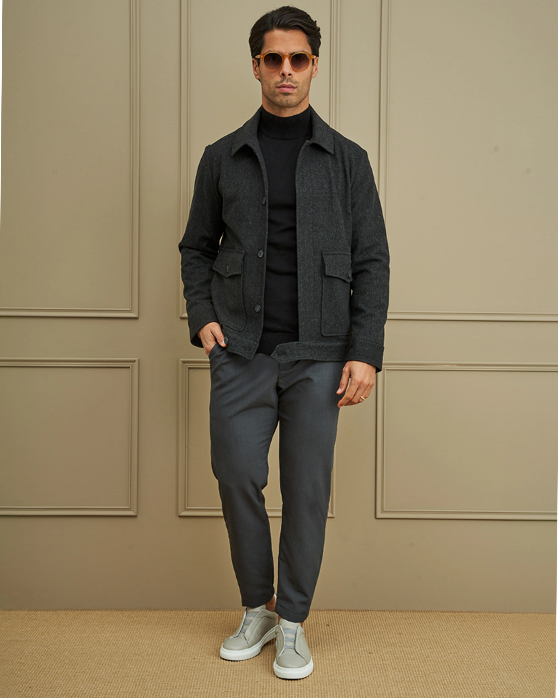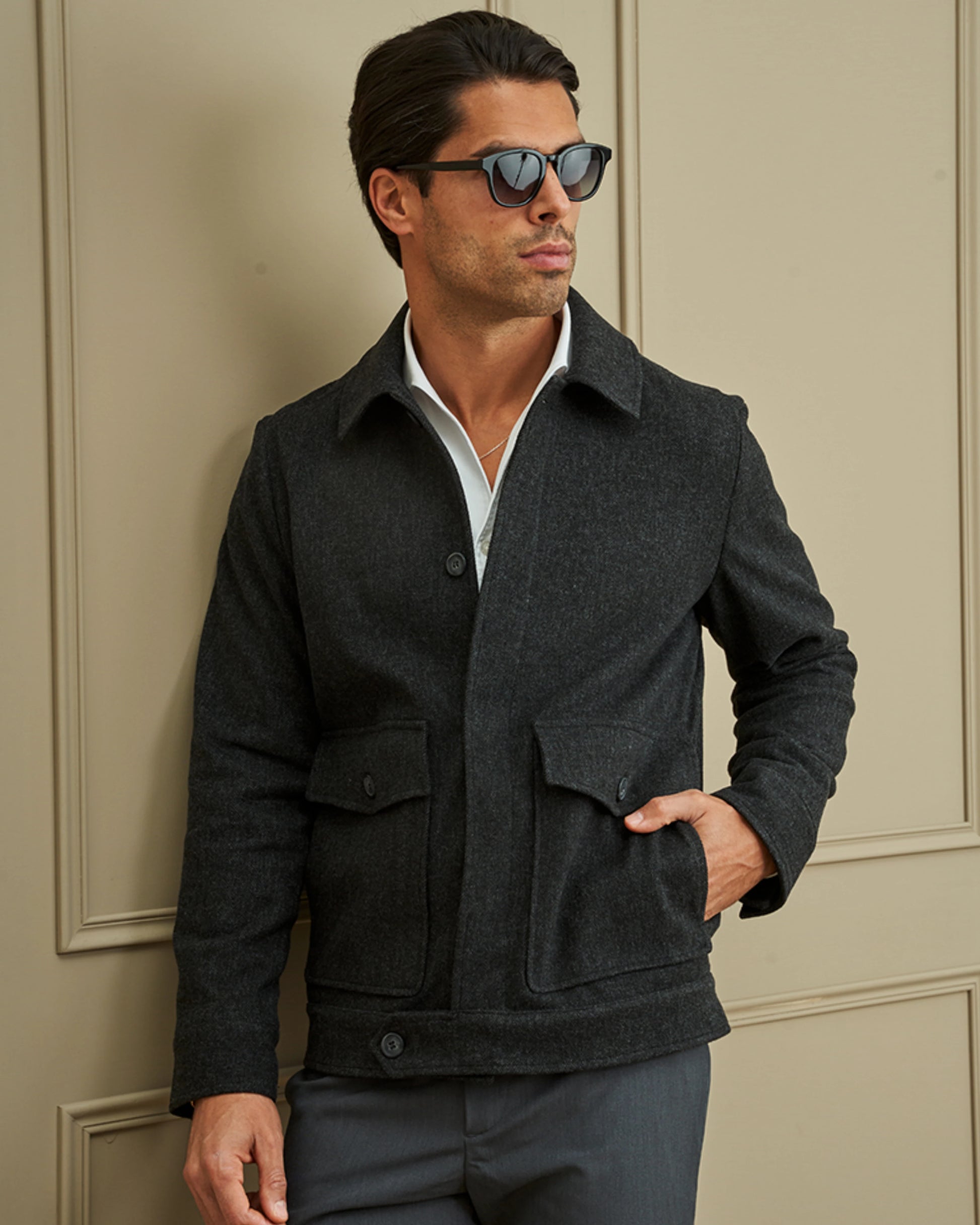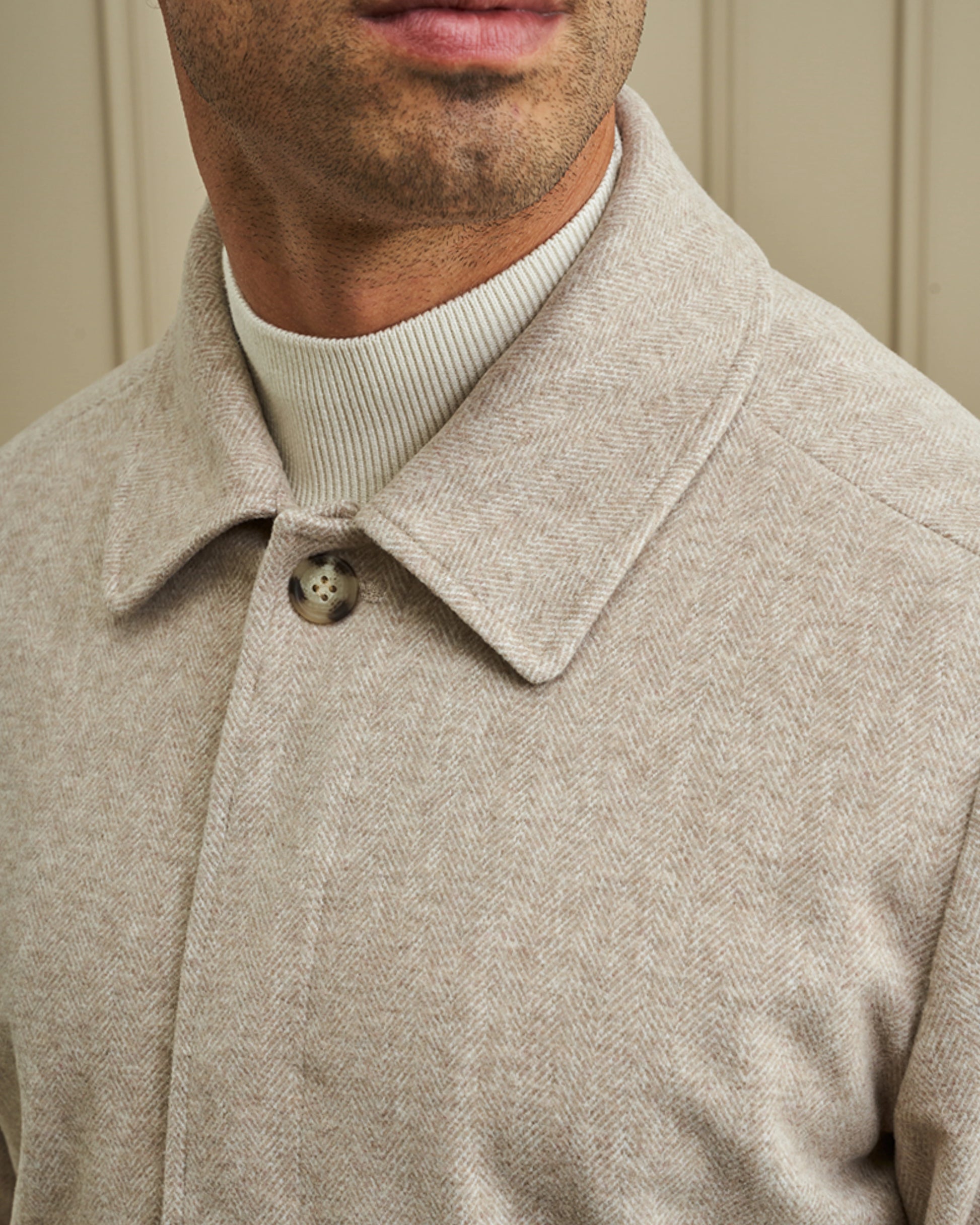 O Casaco Curto Estrutura Espiga une elegância e conforto num modelo moderno e versátil. Com corte curto e estruturado, proporciona liberdade de movimentos sem perder a sofisticação.