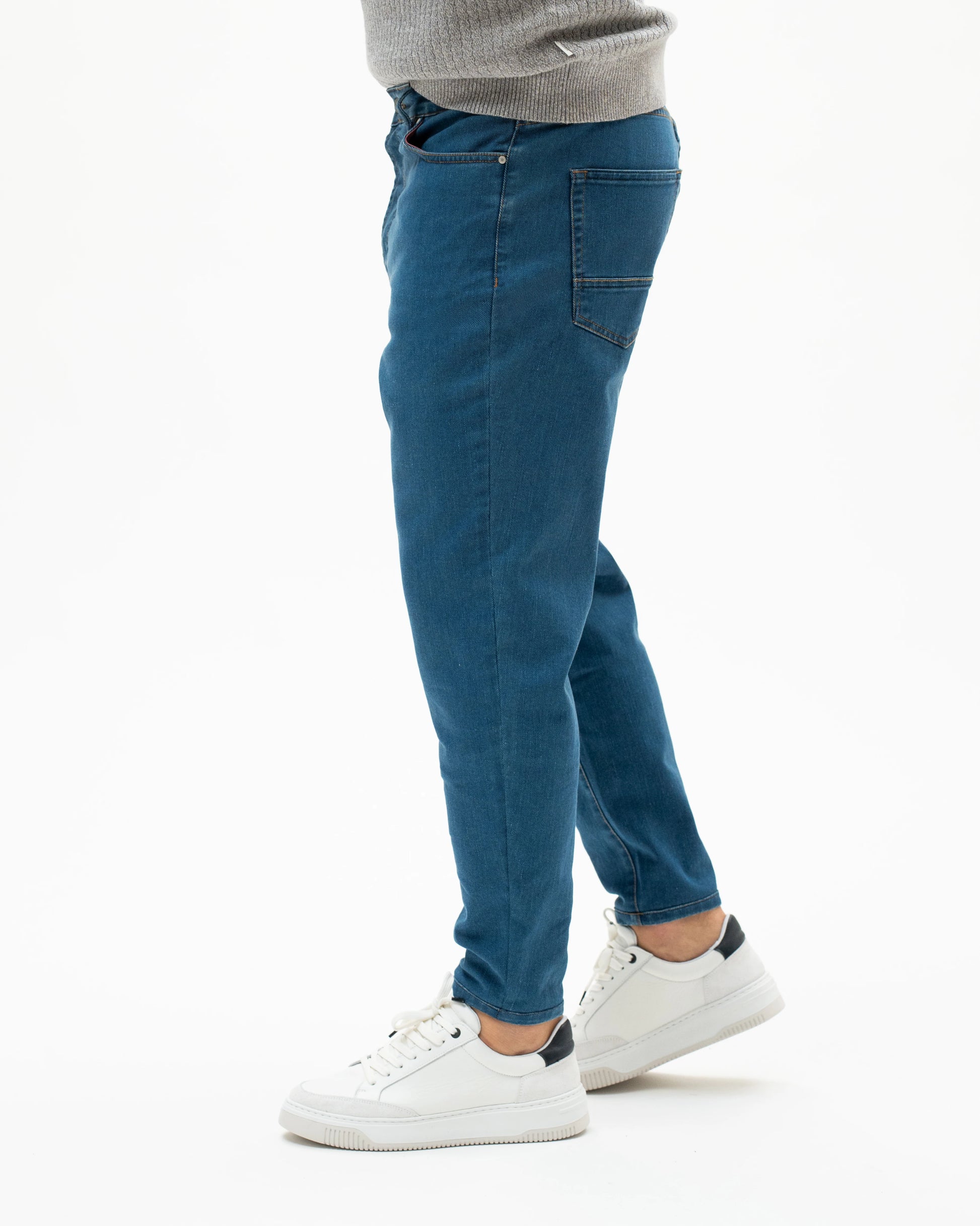 Para um look mais descontraido esta calça tem um estilo mais relaxado, ligeiramente mais larga na coxa e afuniladas junto do tornozelo.
