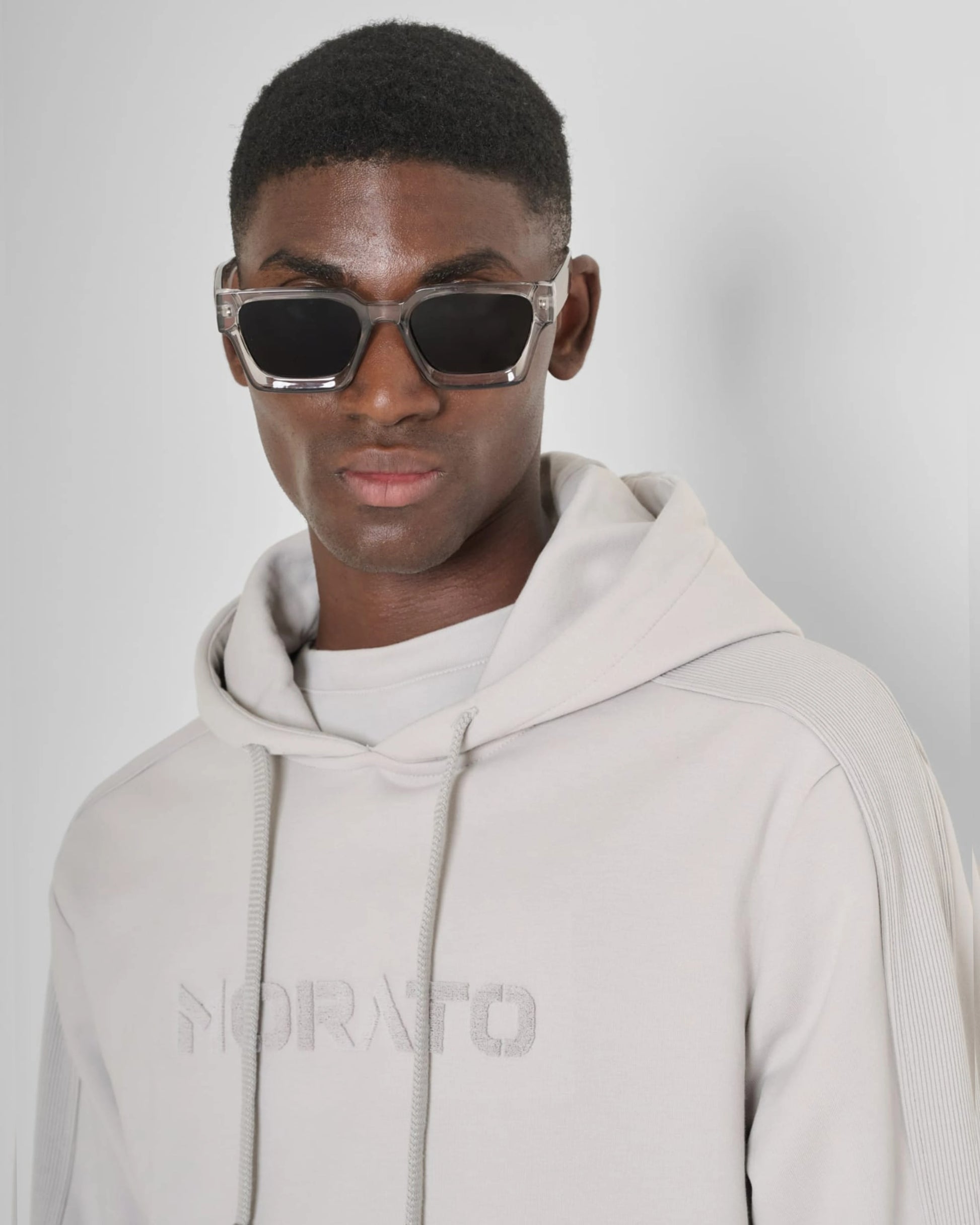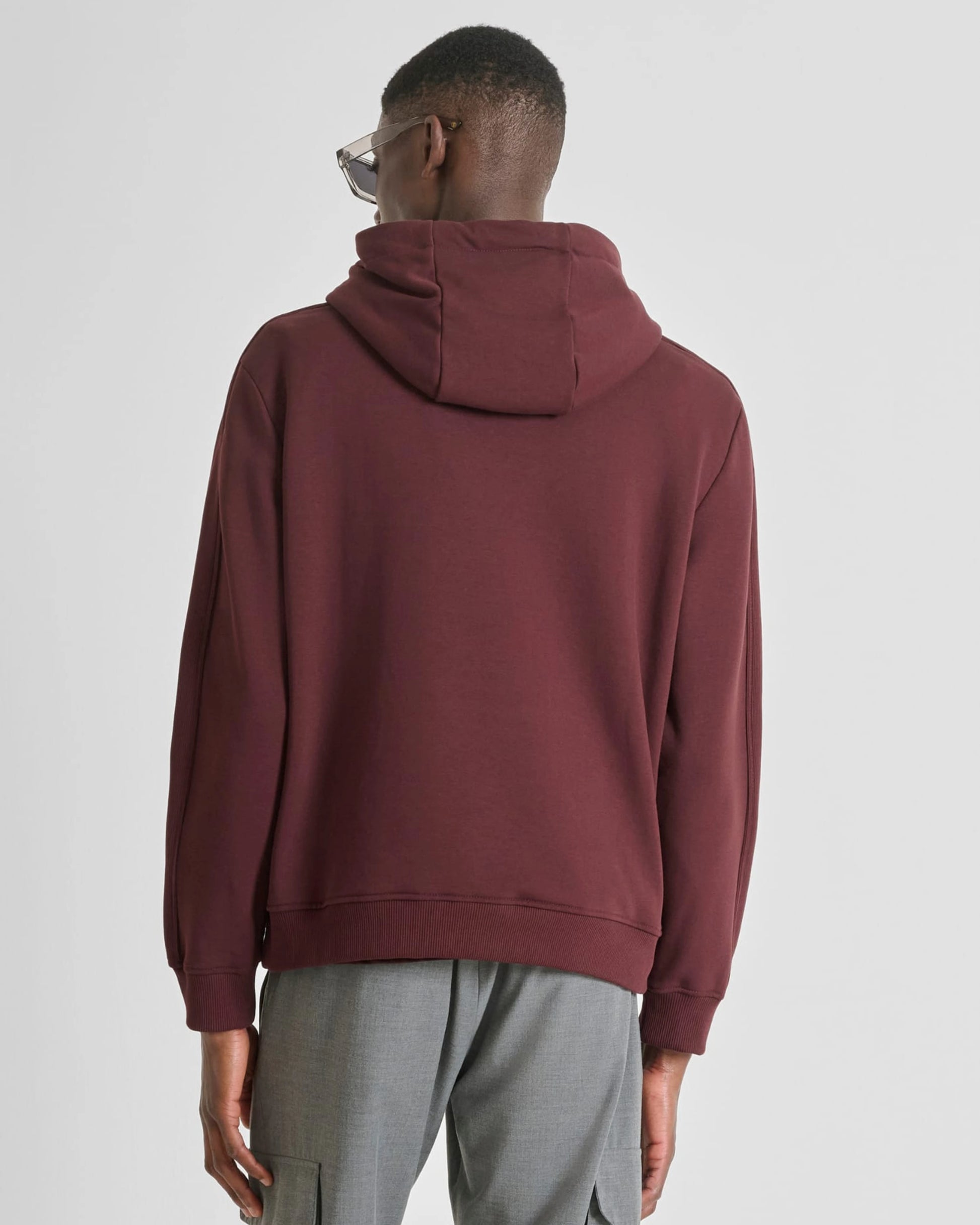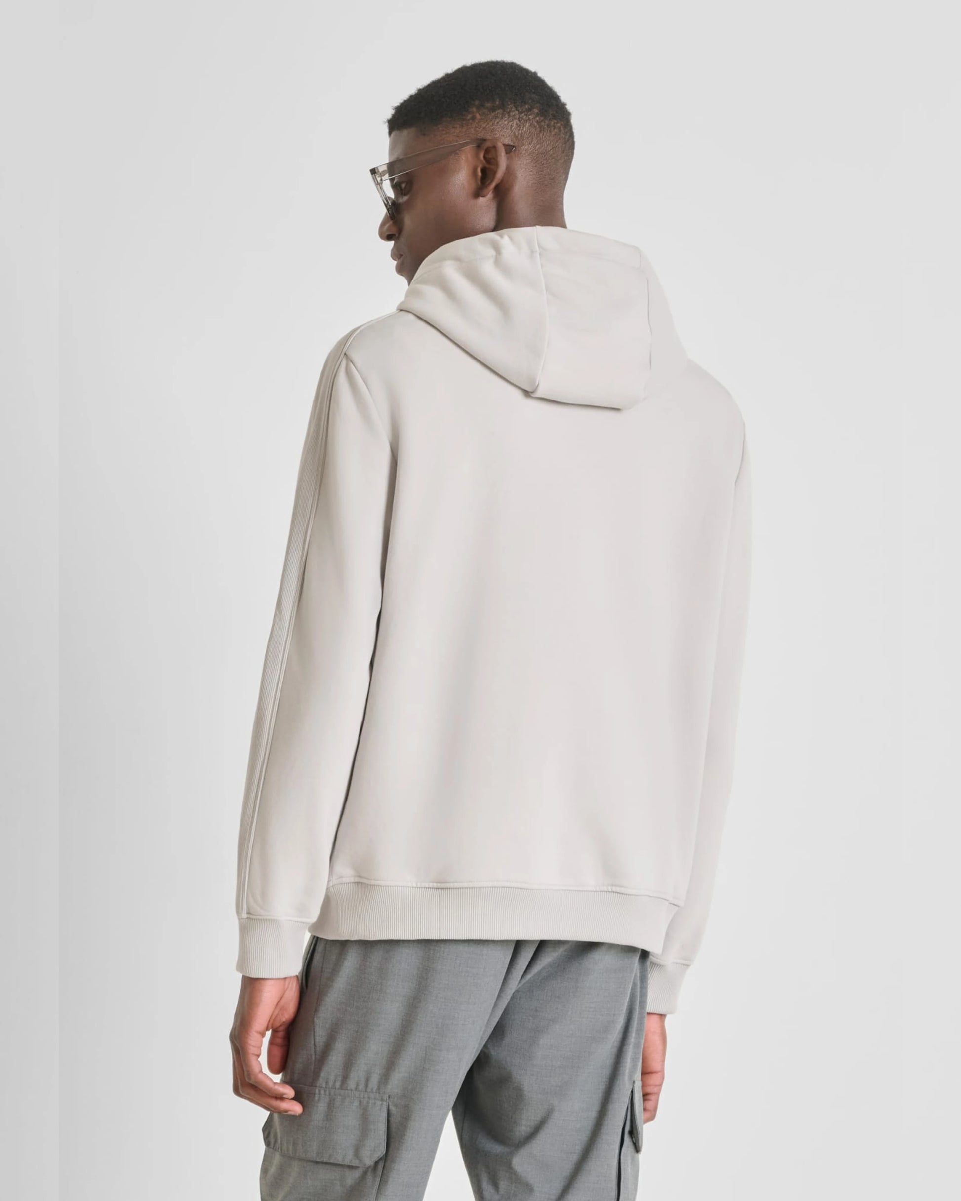 Sweatshirt com capuz de corte descontraído, confecionada em tecido macio de algodão misto sustentável. Possui cordões ajustáveis no capuz, punhos e barra em malha elástica. Nos ombros e ao longo das mangas, uma faixa de malha elástica complementa o design dos punhos e da bainha. Na parte frontal, um logótipo texturado e em relevo. Uma peça essencial da coleção, disponível nas cores mais modernas da estação.