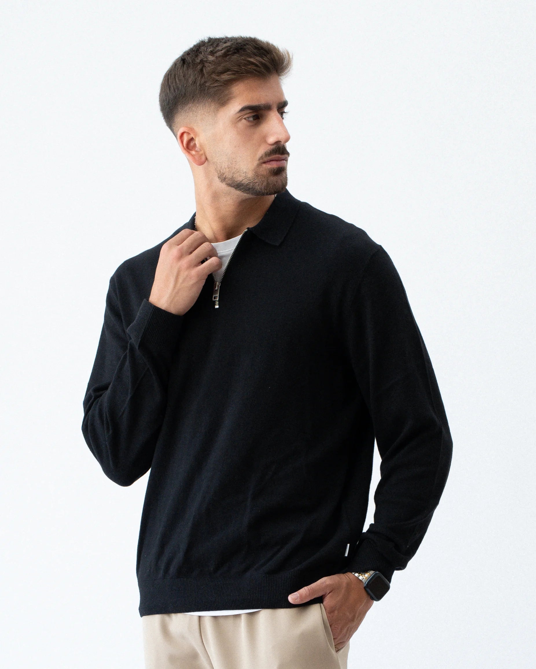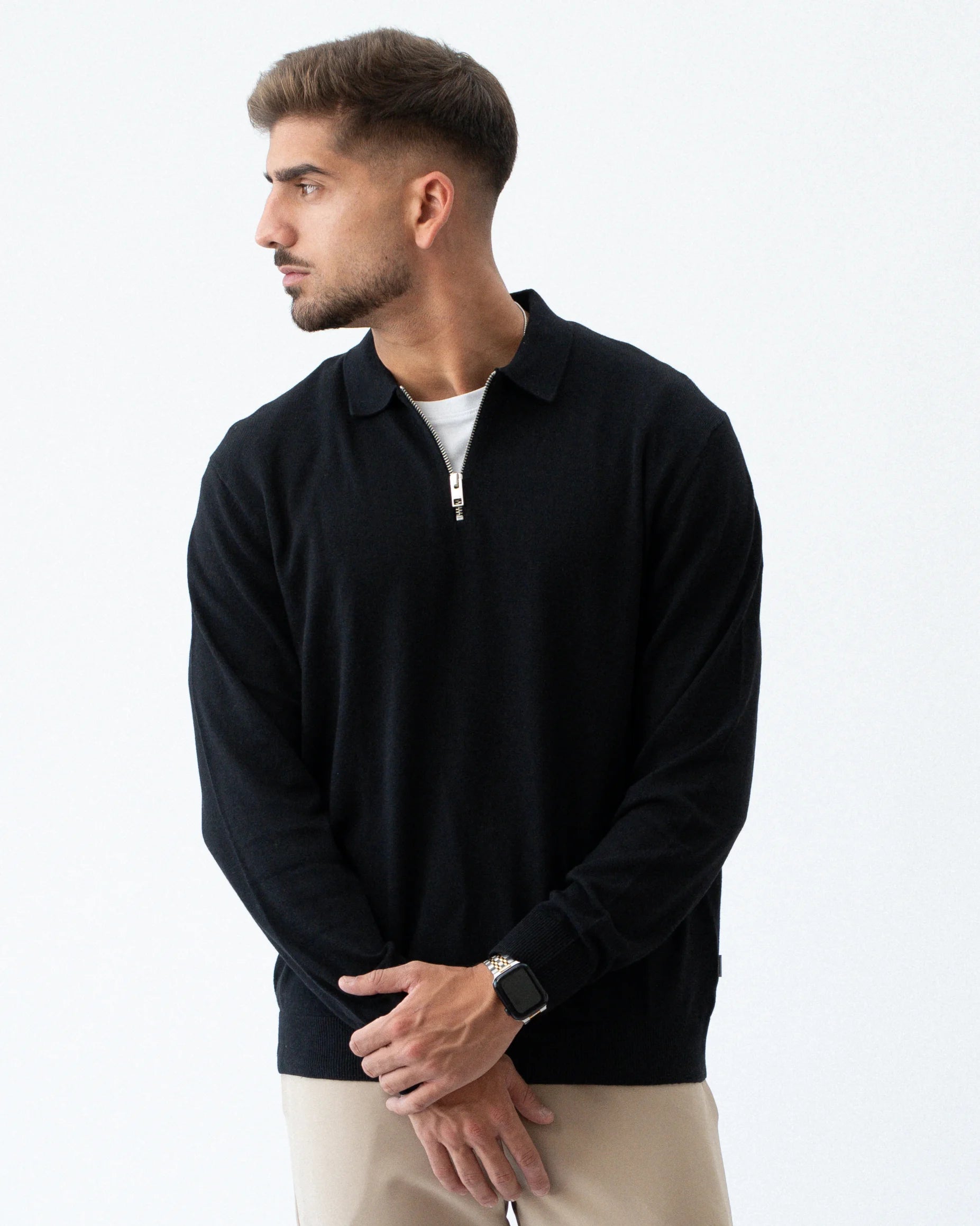 Polo regular fit confecionado em tecido de algodão. Gola de camisa com fecho de correr frontal. Manga comprida.
