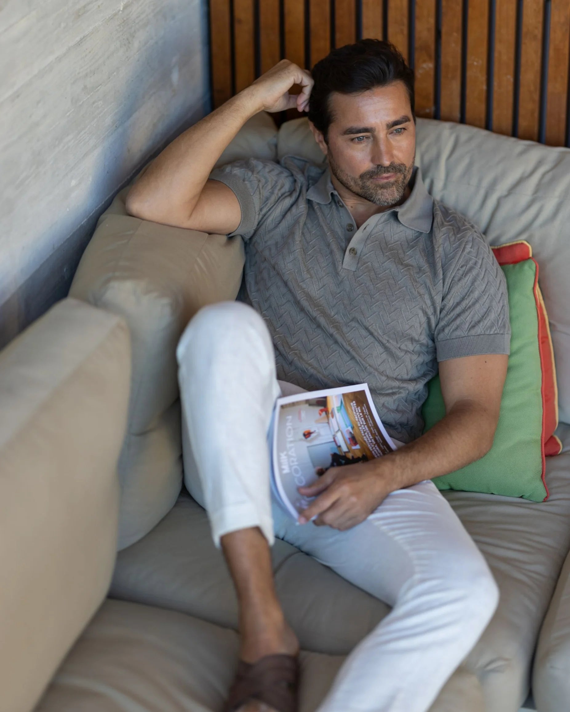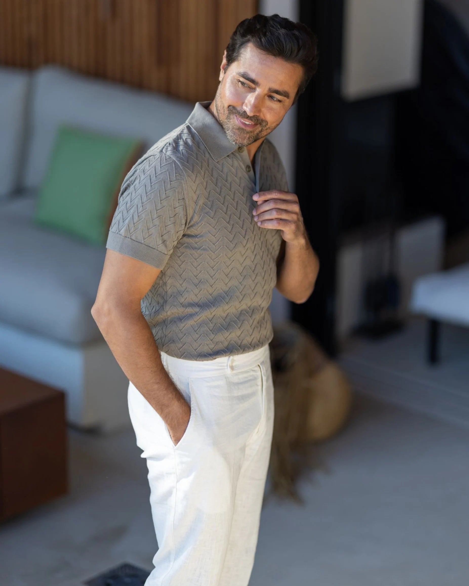 Polo Tricot Desenho Espinha Taupe
