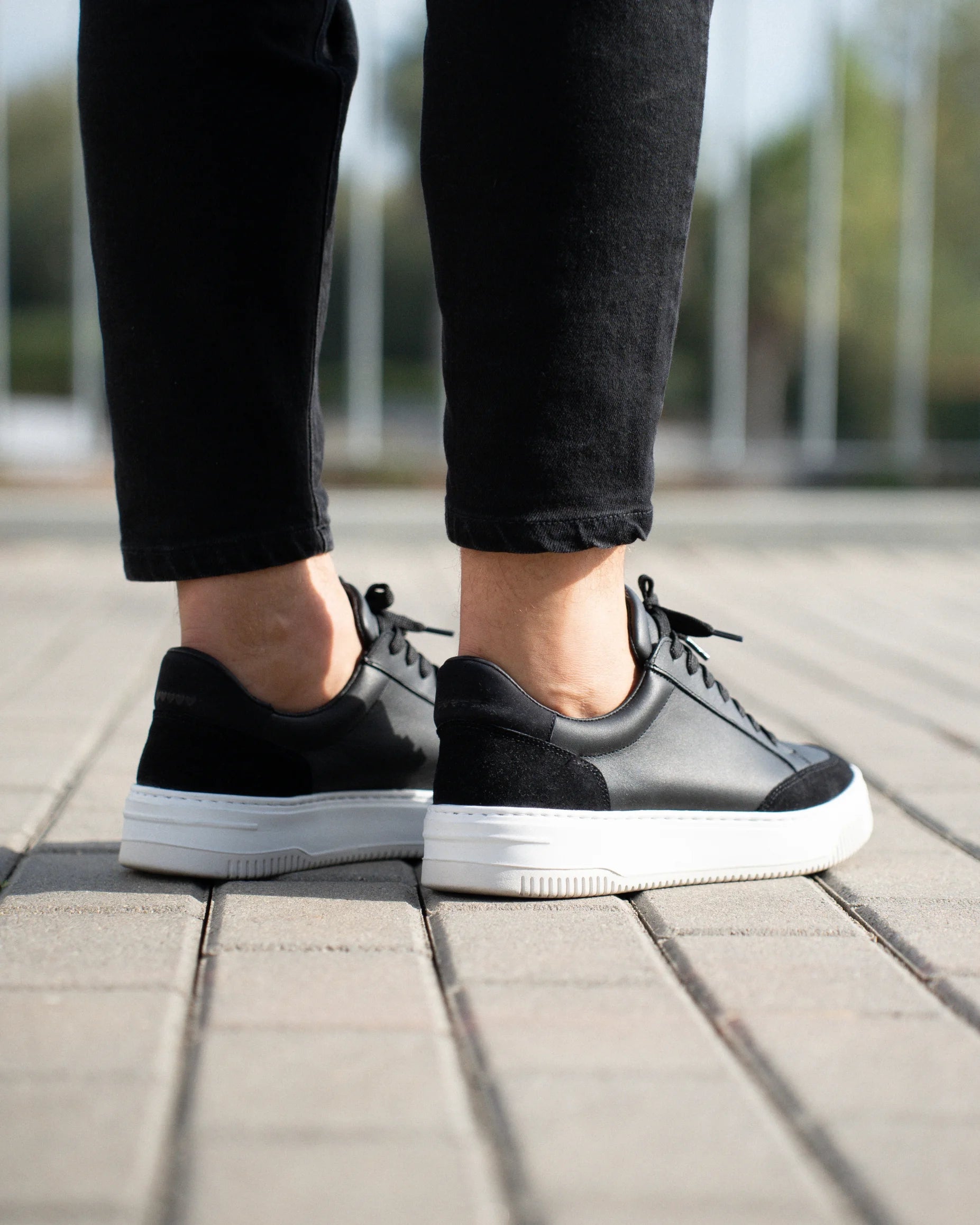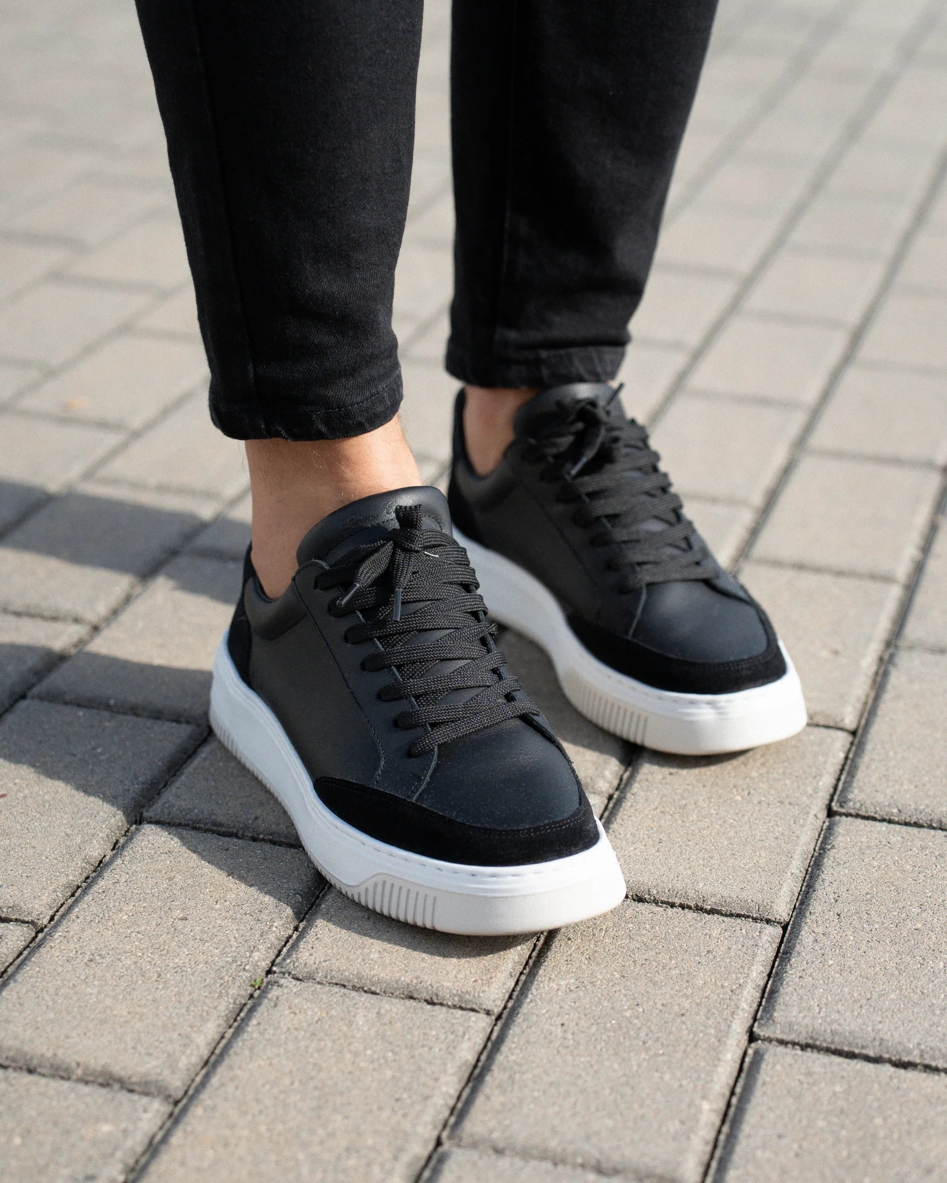 Sapatilha em pele com apontamentos de suede, de sola desportiva. Sapatilha leve, elegante e versátil.