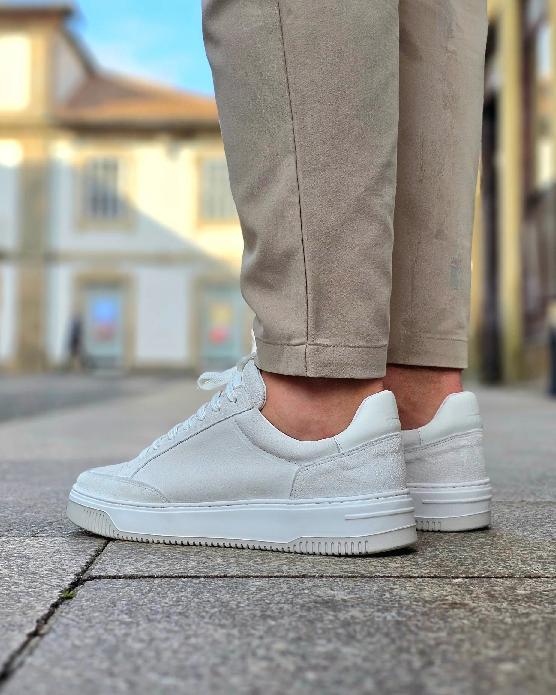 Sapatilha em suede, de sola desportiva. Sapatilha leve, elegante e versátil.